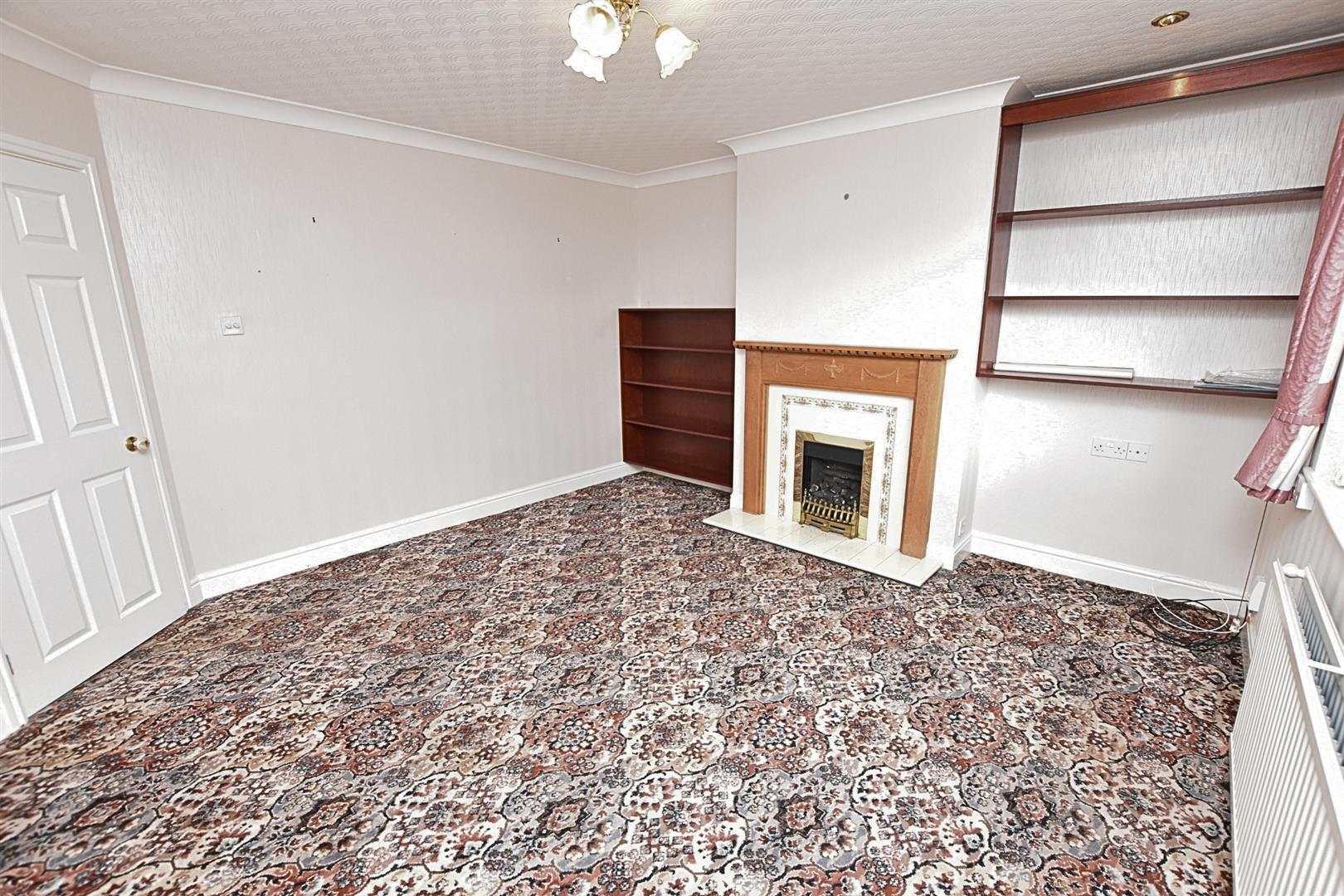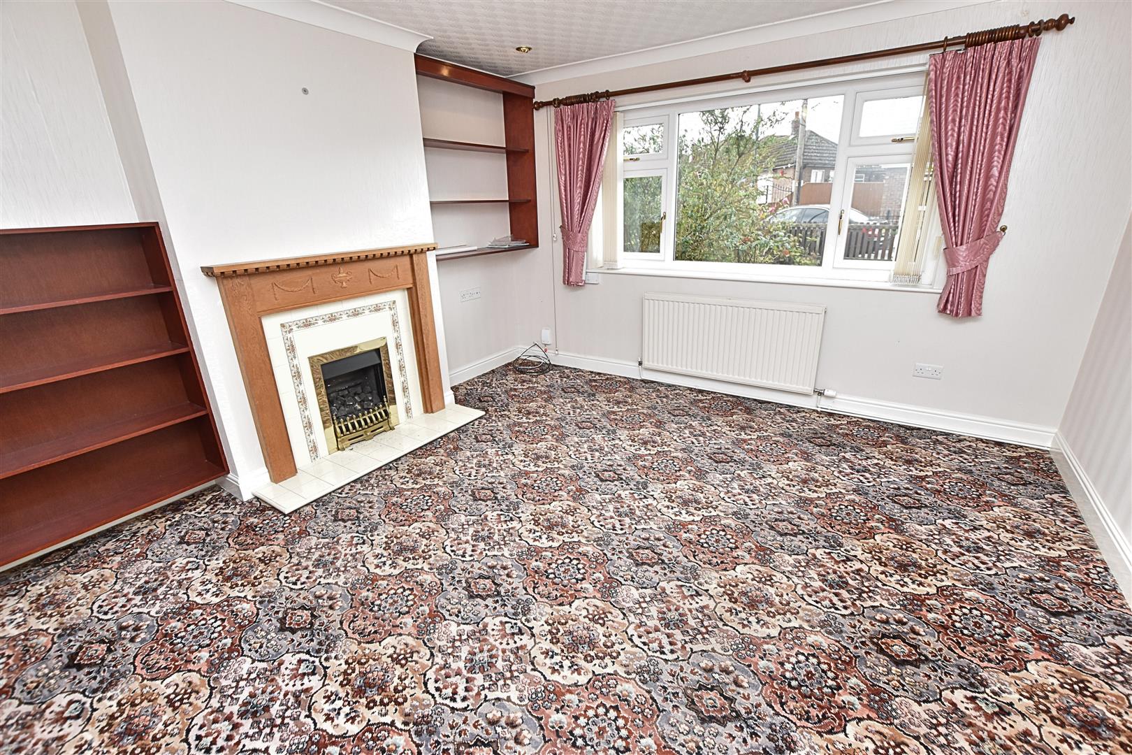 To the front aspect with a uPVC double glazed window, coving to the ceiling, carpeted flooring, radiator and ornate fire surround in an oak finish with living flame effect gas fire, tiled inset and hearth.
