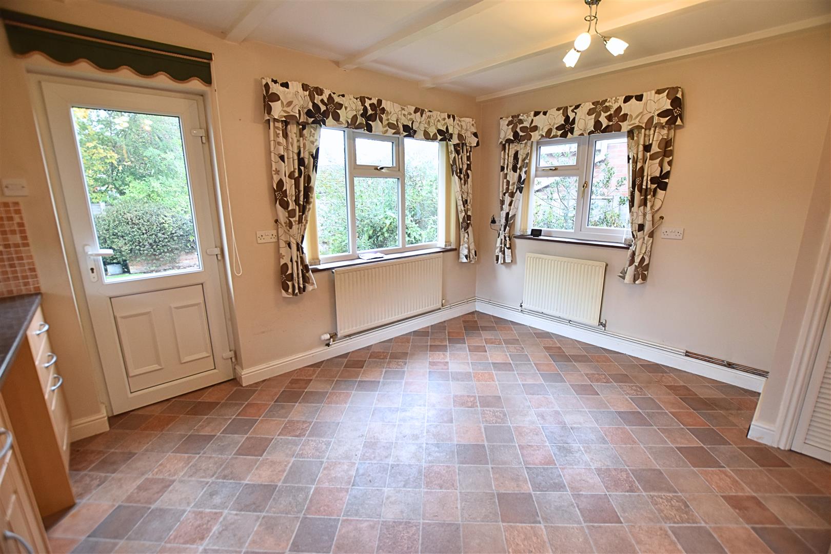 The kitchen diner is ideal for entertaining fitted with a range of wall and base units in a beech finish, contrasting worksurface incorporating the one and a half bowl stainless steel sink unit withtiled splash backs. Built in oven and gas hob with extractor unit over, plumbing for a washing machine. Built in airing cupboard housing the gas central heating boiler. Finished with dual aspect uPVC double glazed windows and door leading to the rear garden, radiator and tiled effect vinyl flooring.