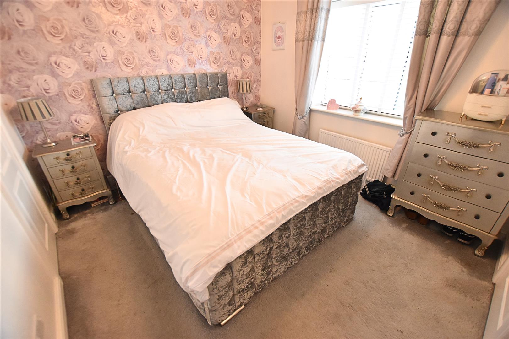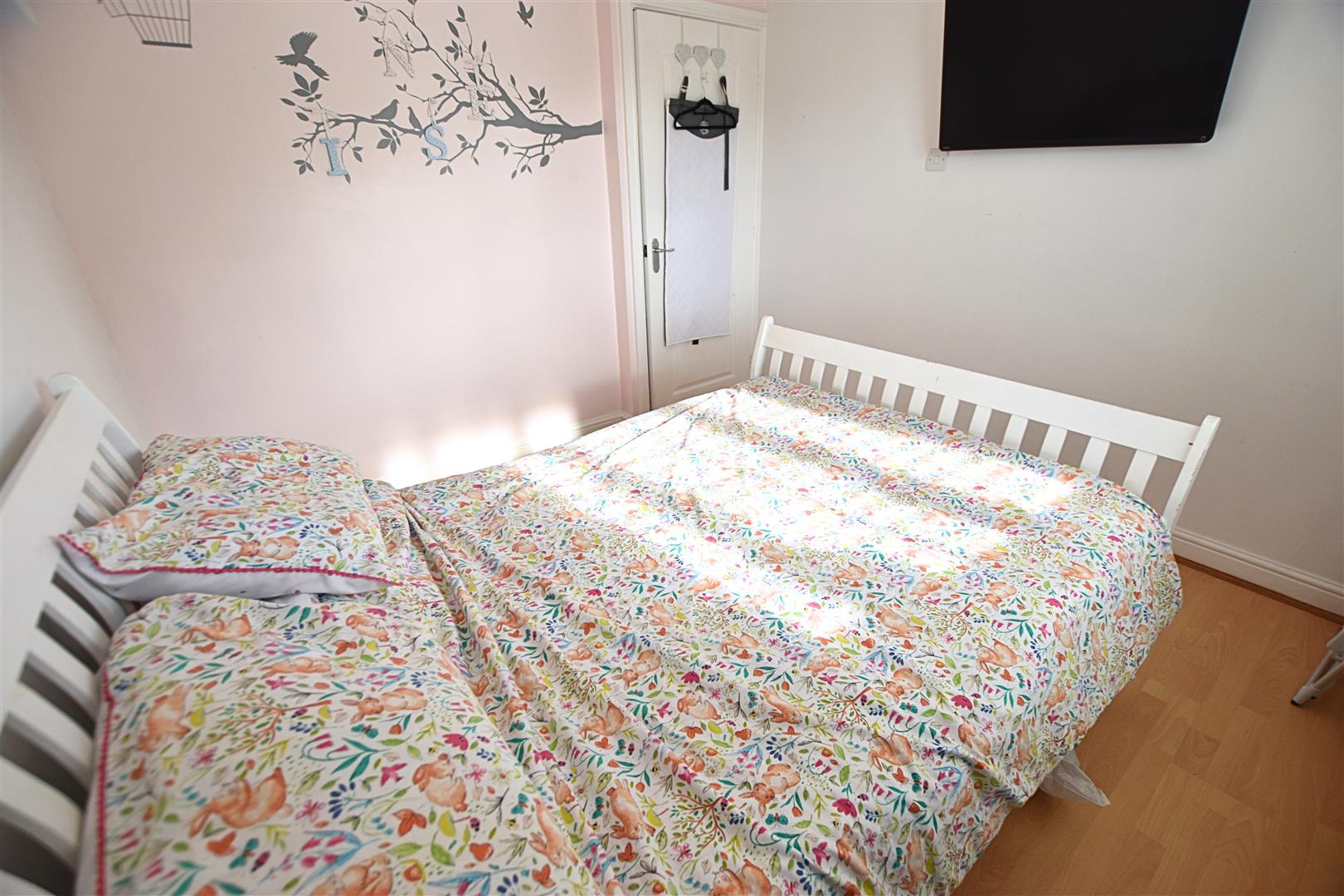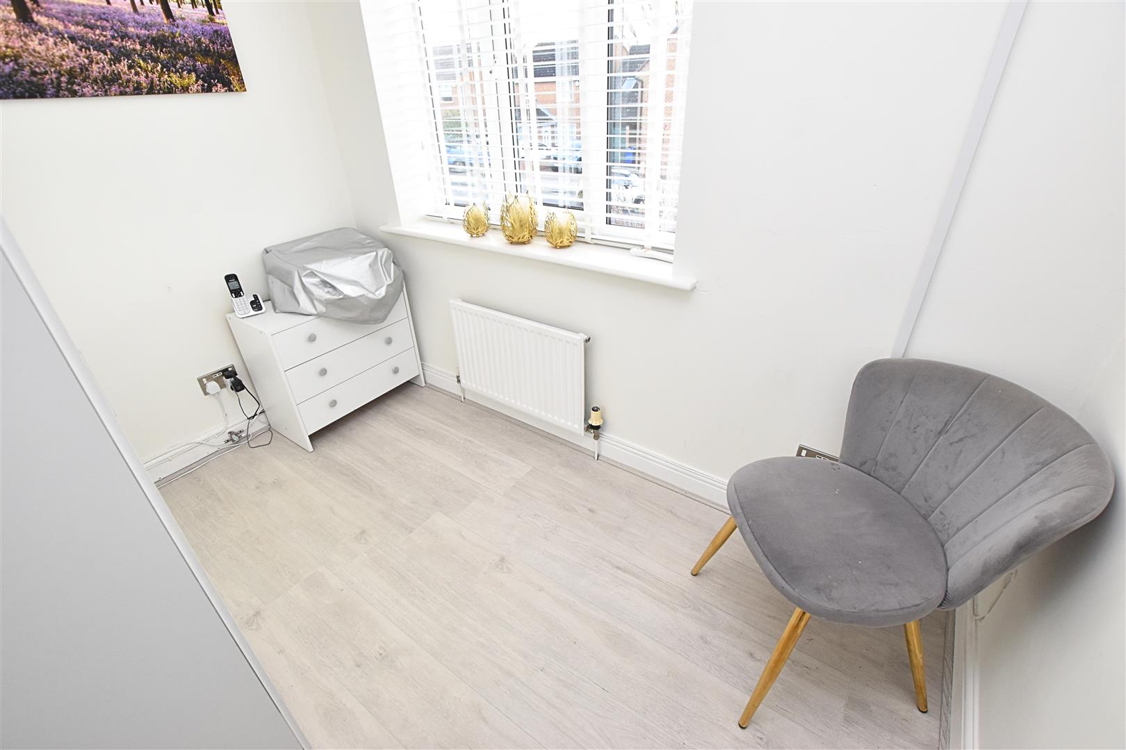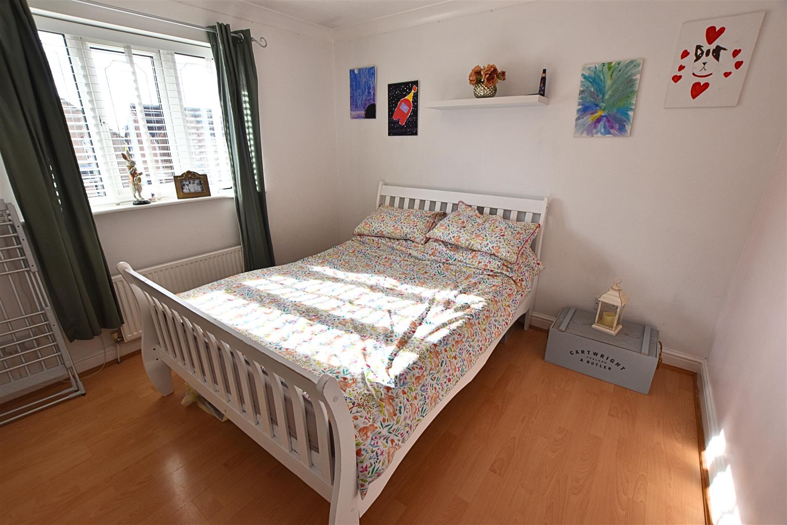 The second double bedroom is to the front aspect with wood effect laminate flooring, radiator and coving to the ceiling.