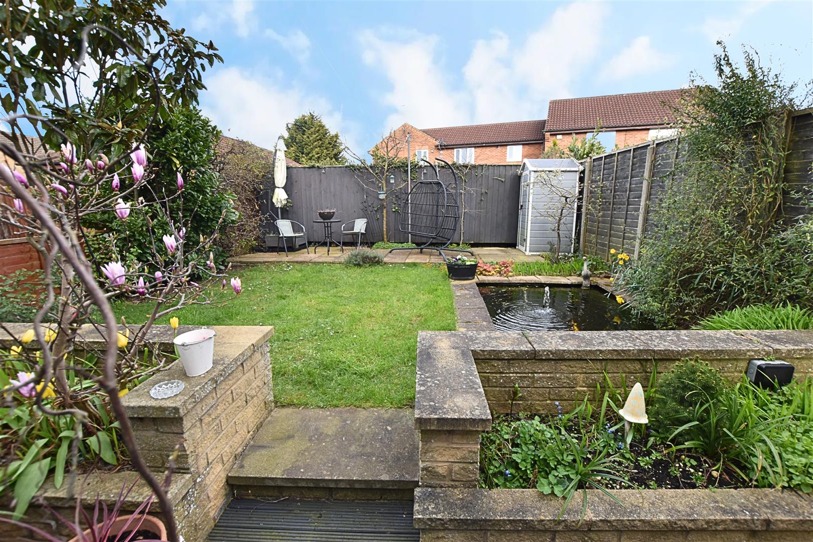 The front garden is open pln and provides off road parking for two vehicles with mature planting to the border. The rear garden has dual aspect patio arears one being deck and the other paved, raised planting beds and fish pond with lawn area having well stock borders and fenced boundaries.