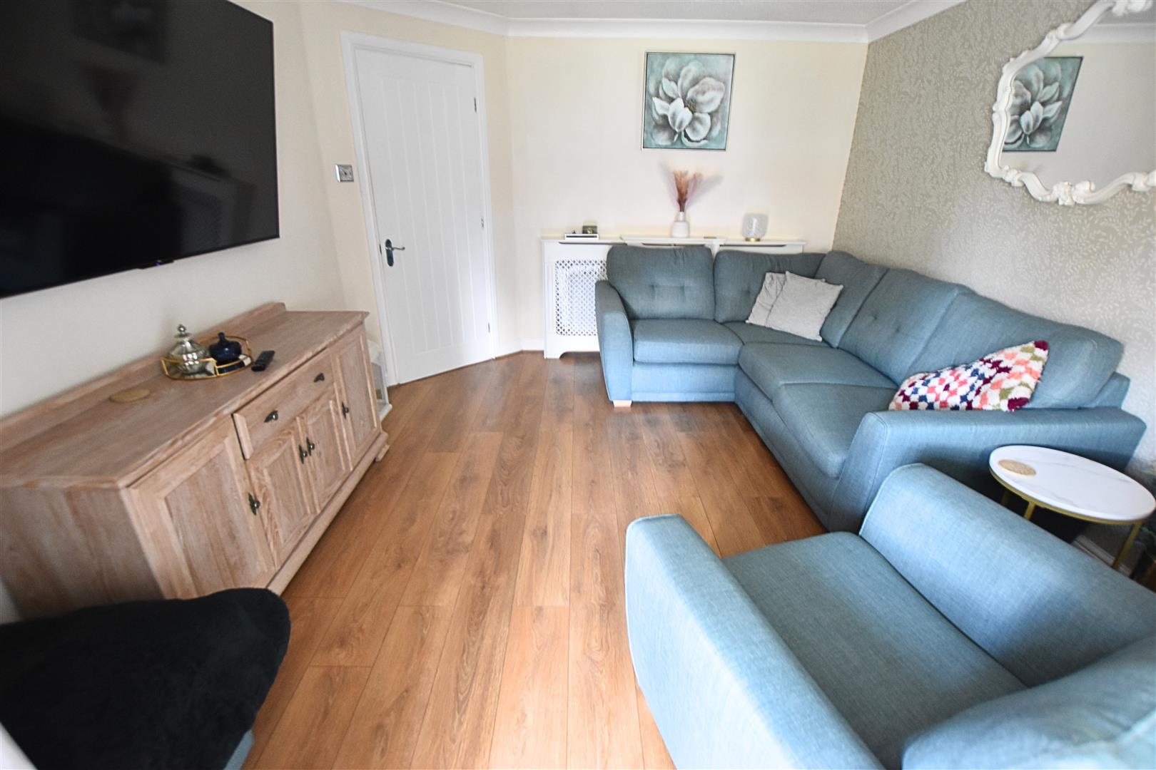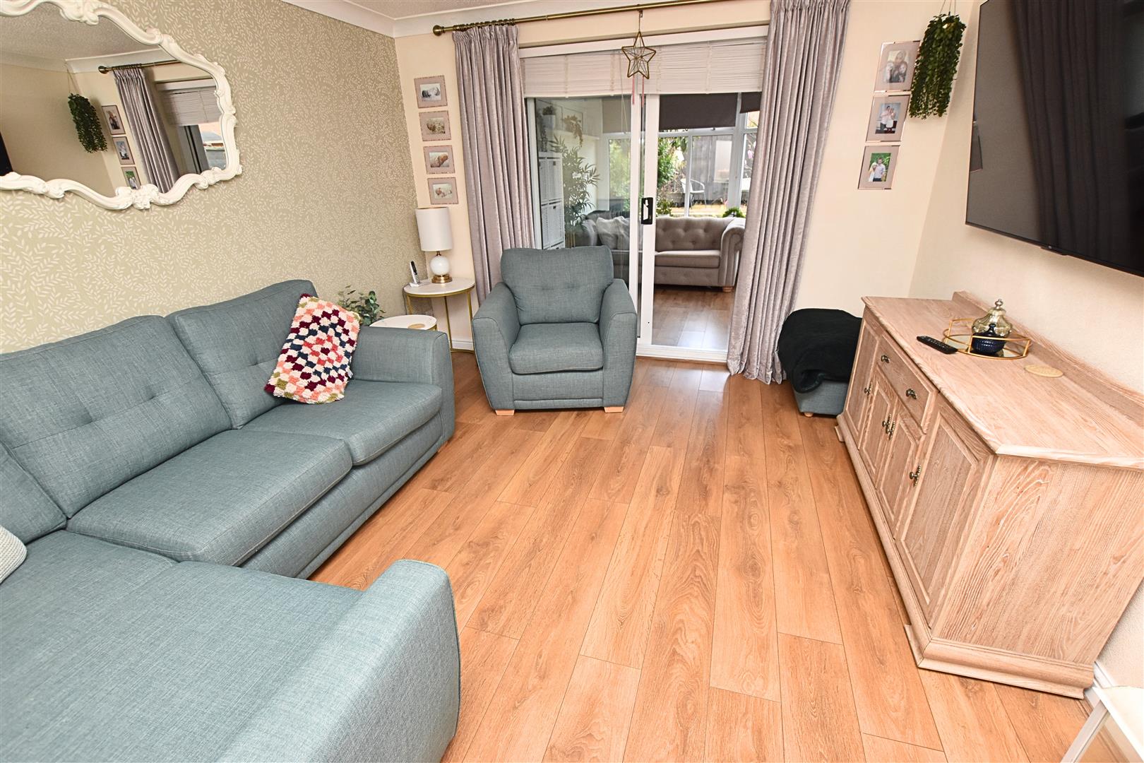 The lounge has uPVC double glazed patio doors leading to the sunroom. Coving to the ceiling, wood effect laminate flooring and radiator with ornate cover.