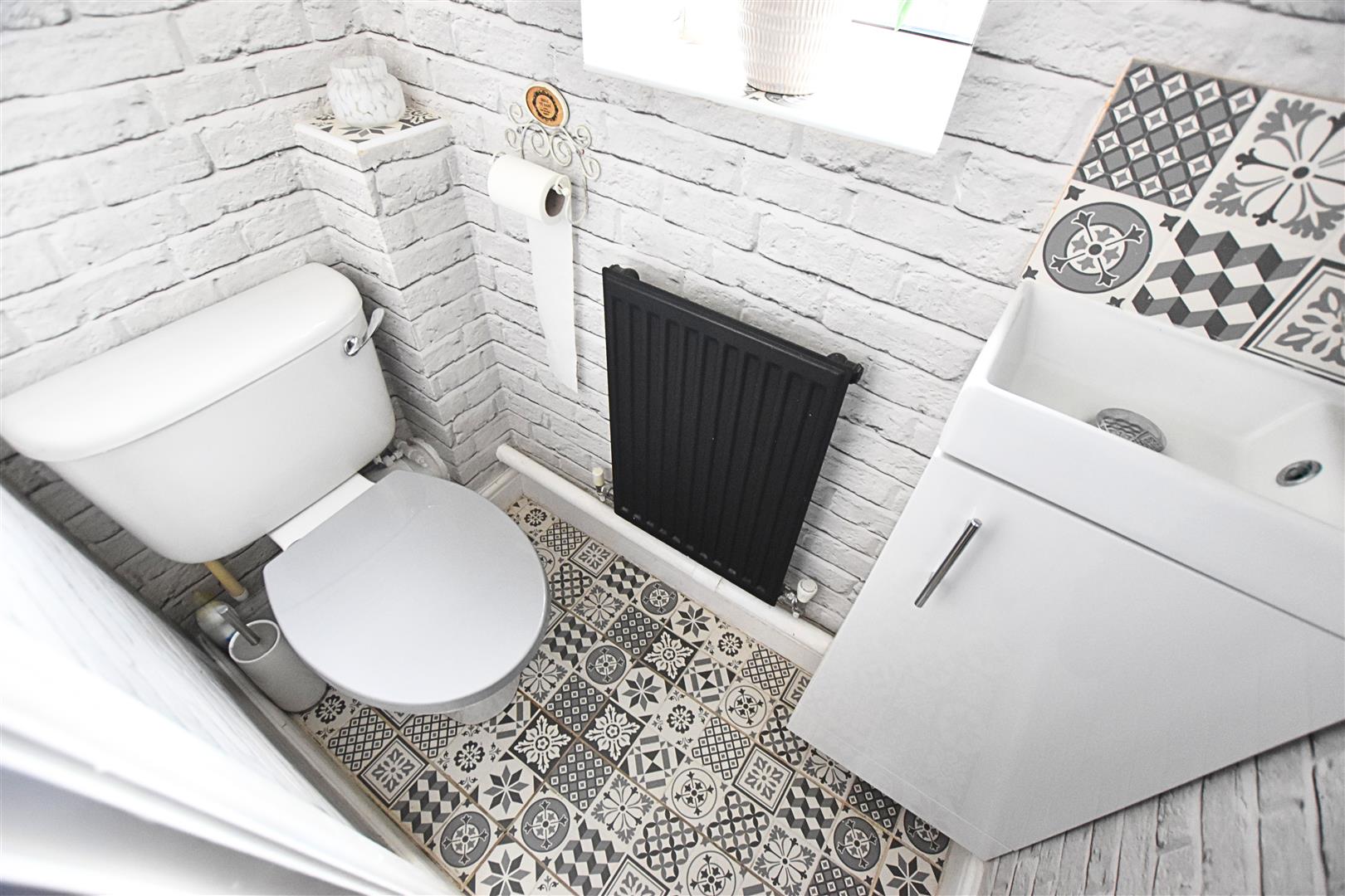 The handy cloakroom benefits from w white two piece suite comprising of wc and vanity hand wash basin with handy storage and tiled splashbacks. Finished with coving to the ceiling, tiled flooring, radiator and a uPVC double glazed window to the front aspect.