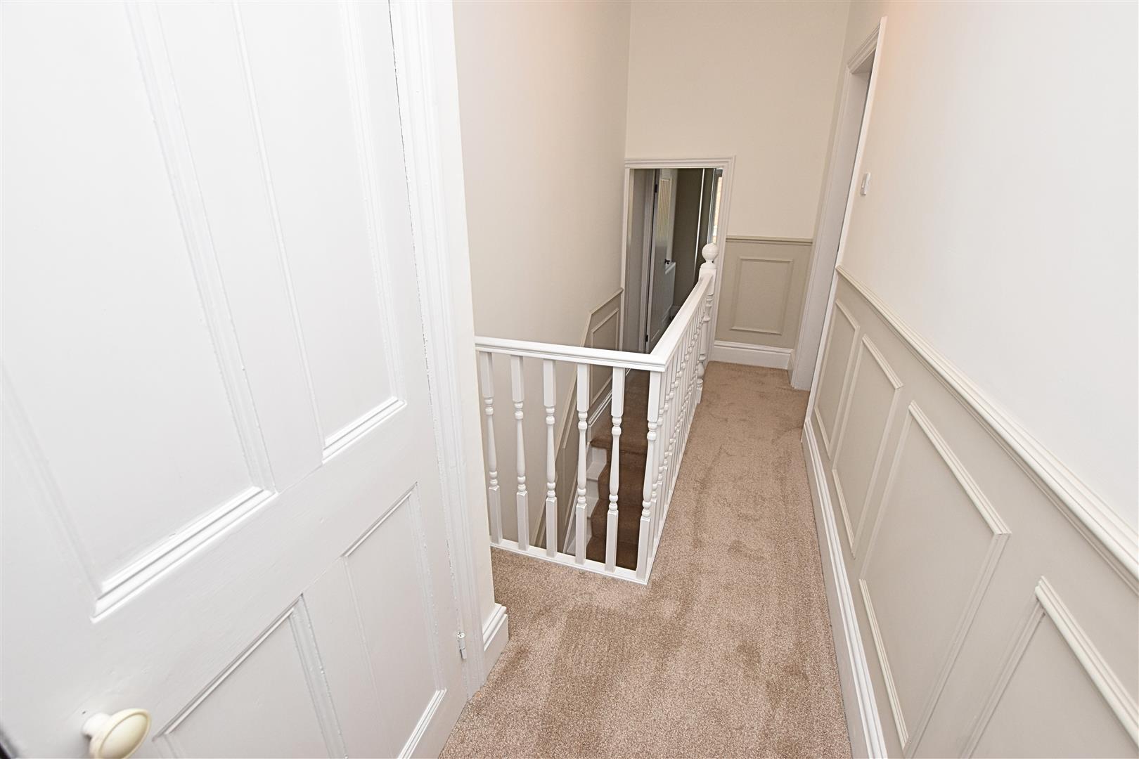 The split level landing has continued panelled walls to dado height, newly fitted carpeted flooring, white open spindle balustrade, modern white panelled connect doors and original built in storage cupboard. Loft access to the ceiling.