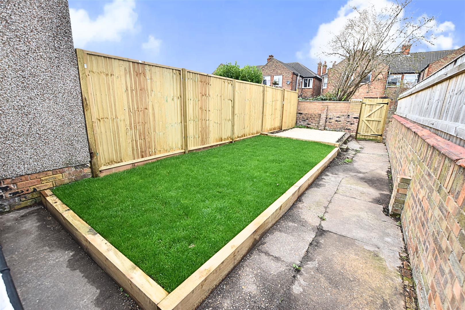The property stand with a low maintenance gravelled front garden with pathway leading to the property, newly fenced boundaries and a new wood access gate. The pleasant enclosed rear garden has newly fenced boundaries with a rear wood gate leading to the secure passage way, raised gravelled patio area and lawn with sleeper style edging.