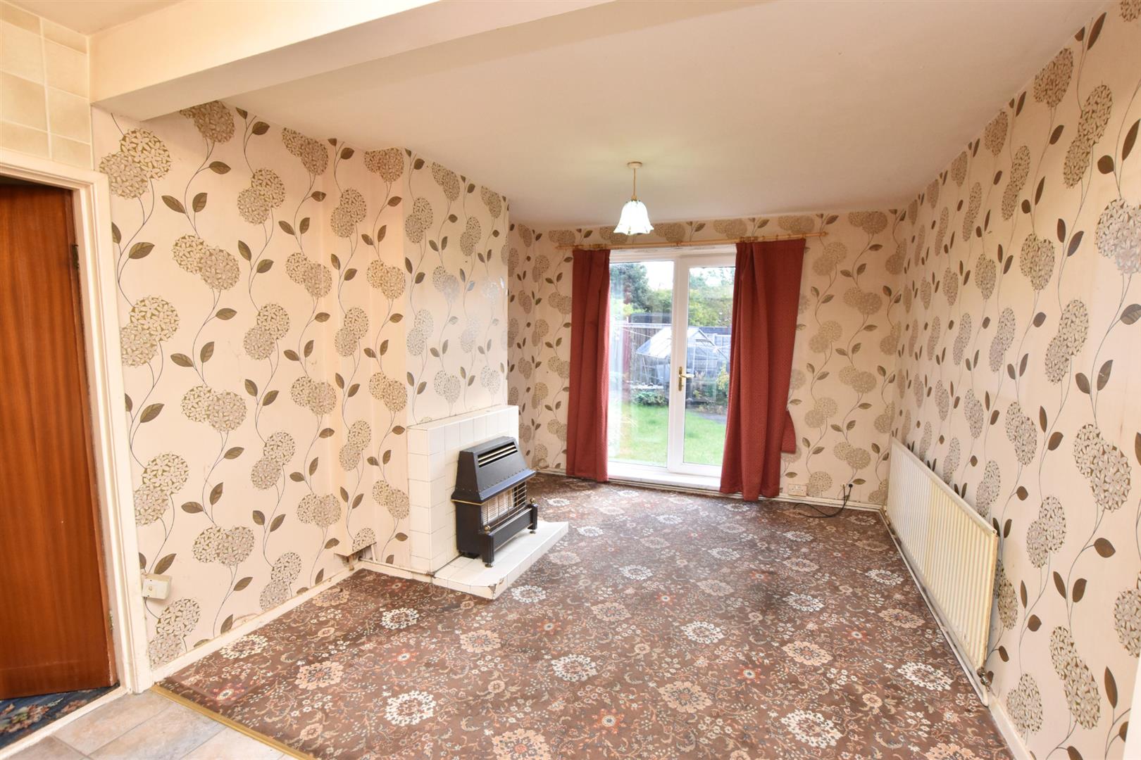This kitchen benefits from a range of wood fronted wall and base units with contrasting work surfaces and fully tiled walls. Stainless steel sink, slot in cooker and ample space for a under counter tumble dryer or dishwasher. Open to the dining area which has a uPVC double glazed door with side light panel to the rear aspect, carpeted flooring, radiator, and original tiled fire place with gas fire.