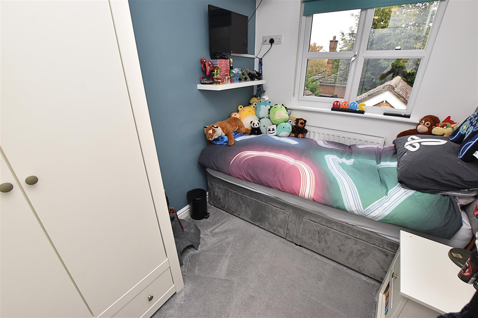 To the rear of the property with a uPVC double glazed window, coving to the ceiling, carpeted flooring and radiator.