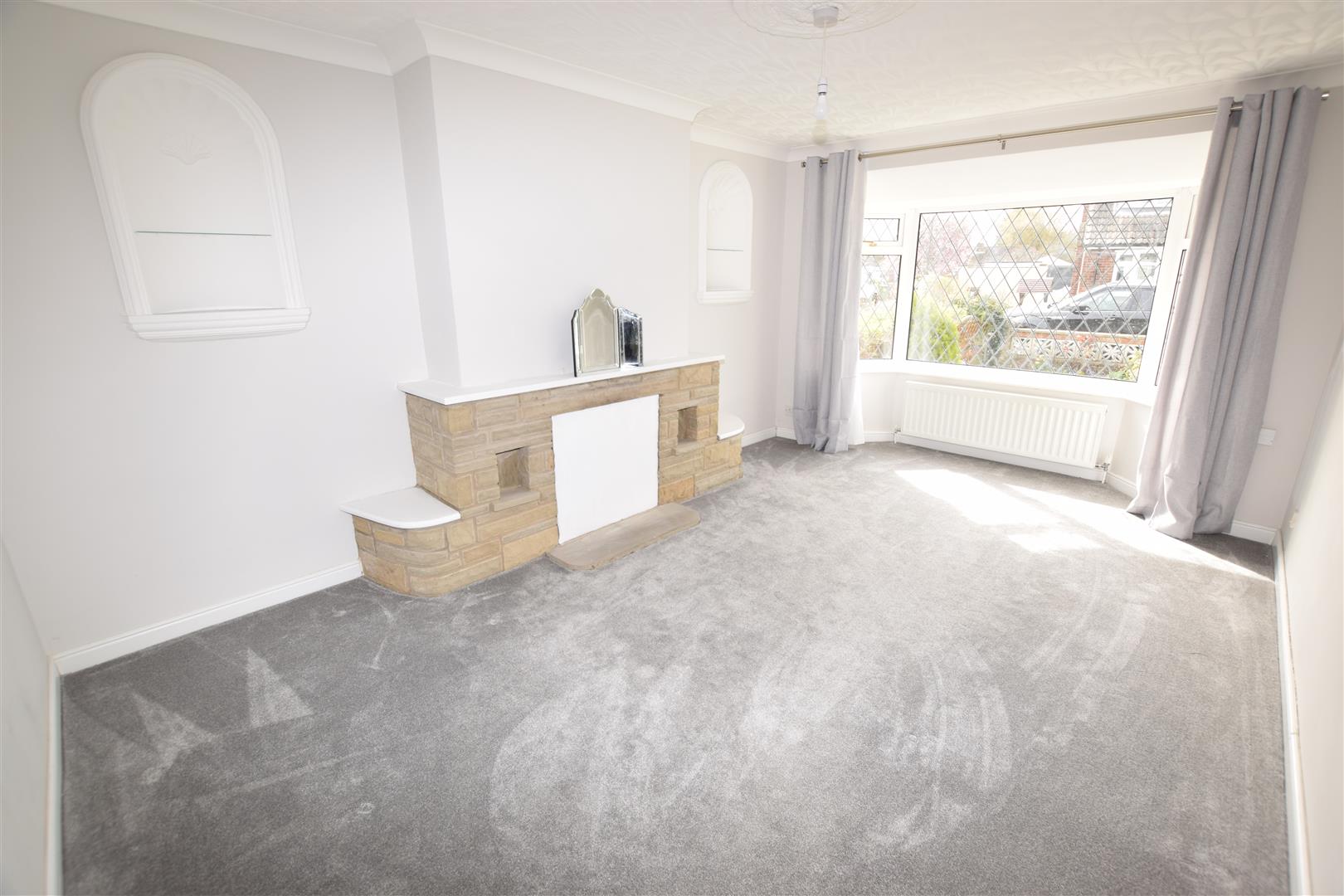 With walk-in double glazed decorative leaded bay window to the front aspect. Feature stone fireplace with white display ends and mantle shelf. 2 x ornate wall mounted display niches. Central heating radiator. Coving & ornate rose to the textured ceiling.