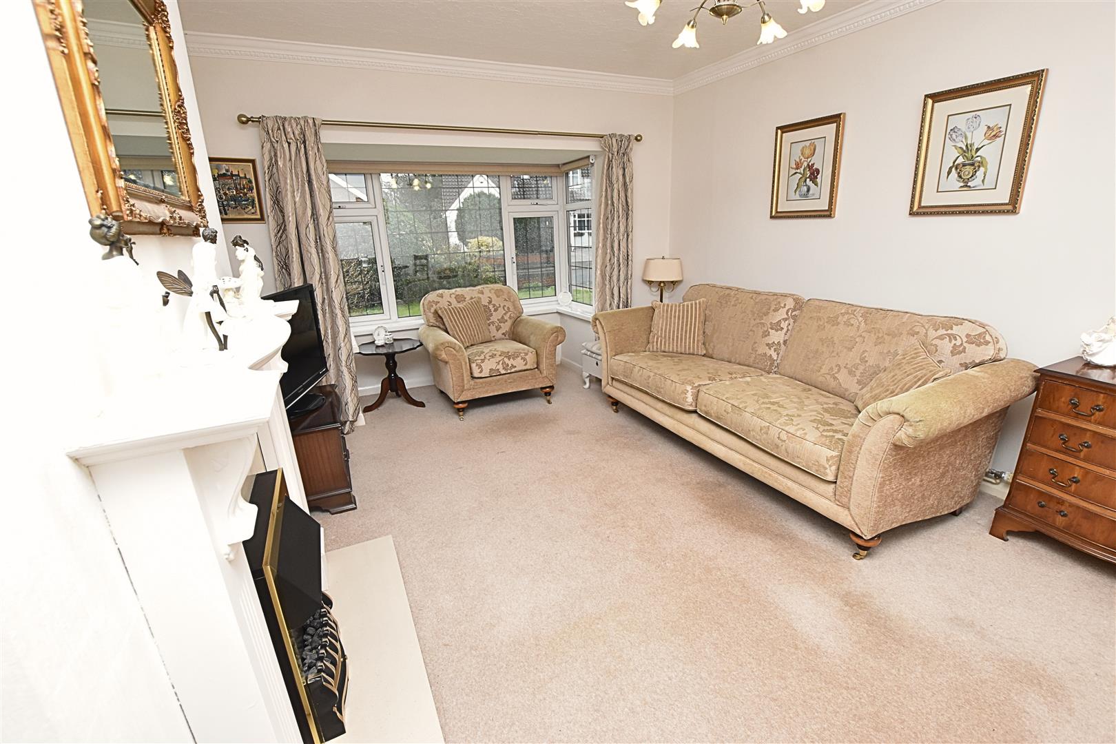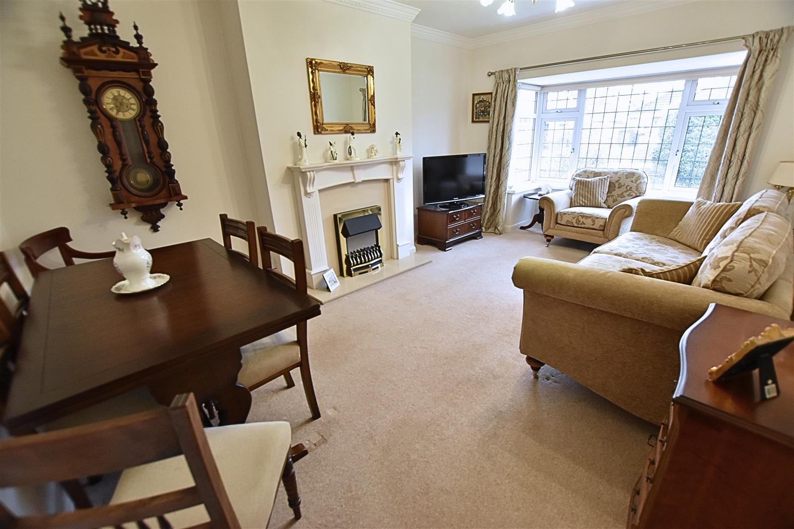 The lounge has a uPVC double glazed square bay window to the front aspect, coving to the ceiling, carpeted flooring, radiator and feature white wooden fire surround with marble style hearth and back and inset coal effect gas fire. Having ample space for a two piece suite and dining table.