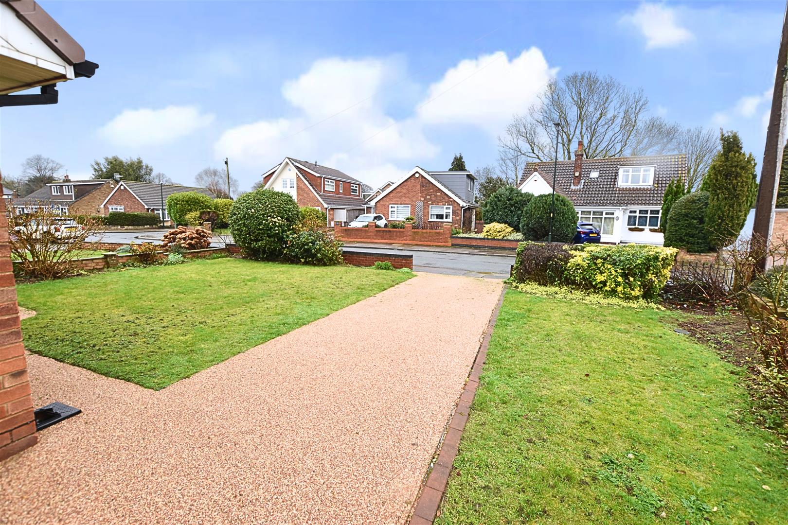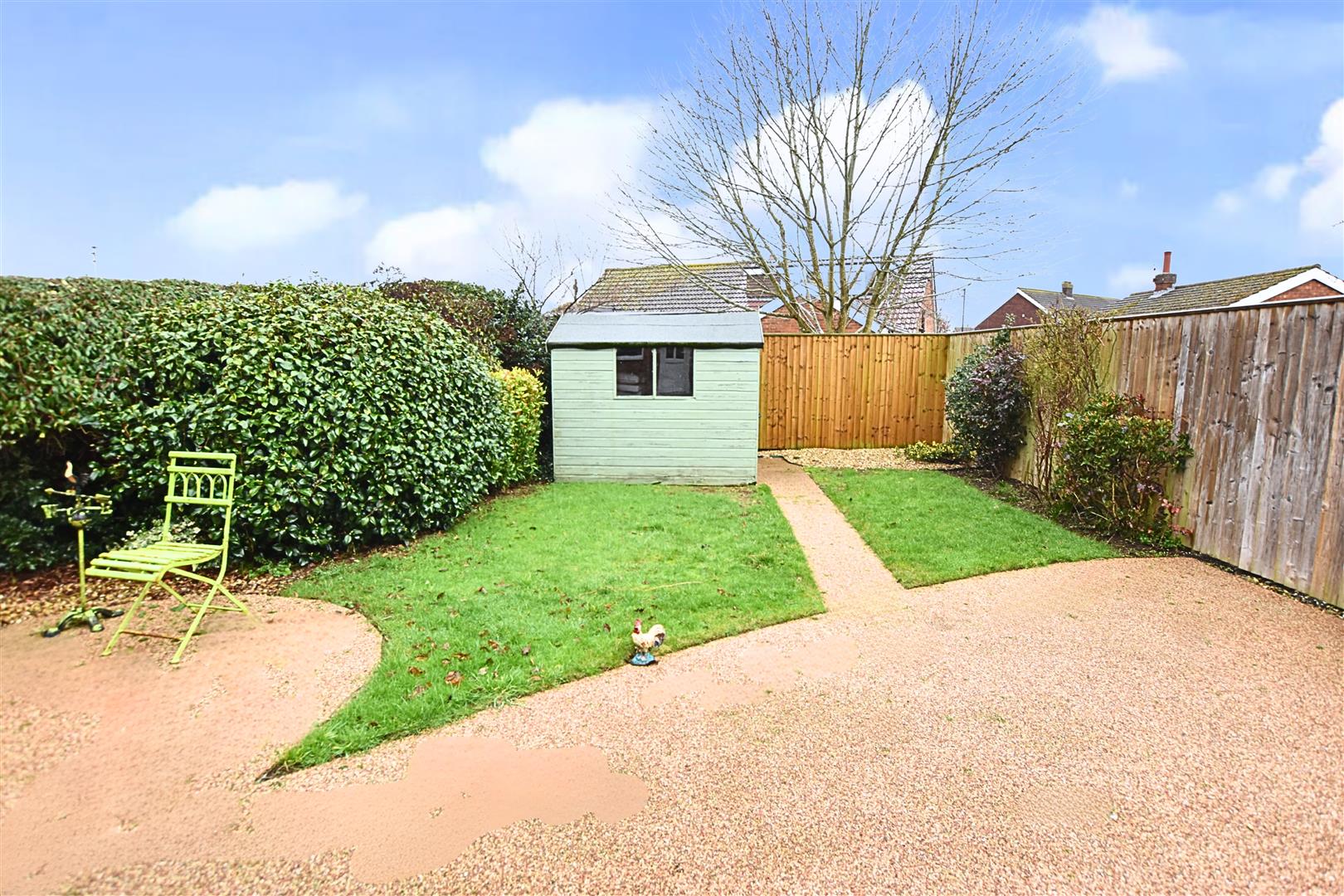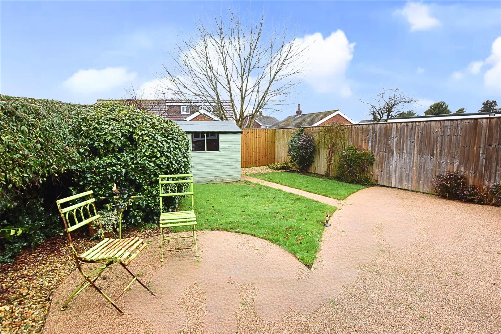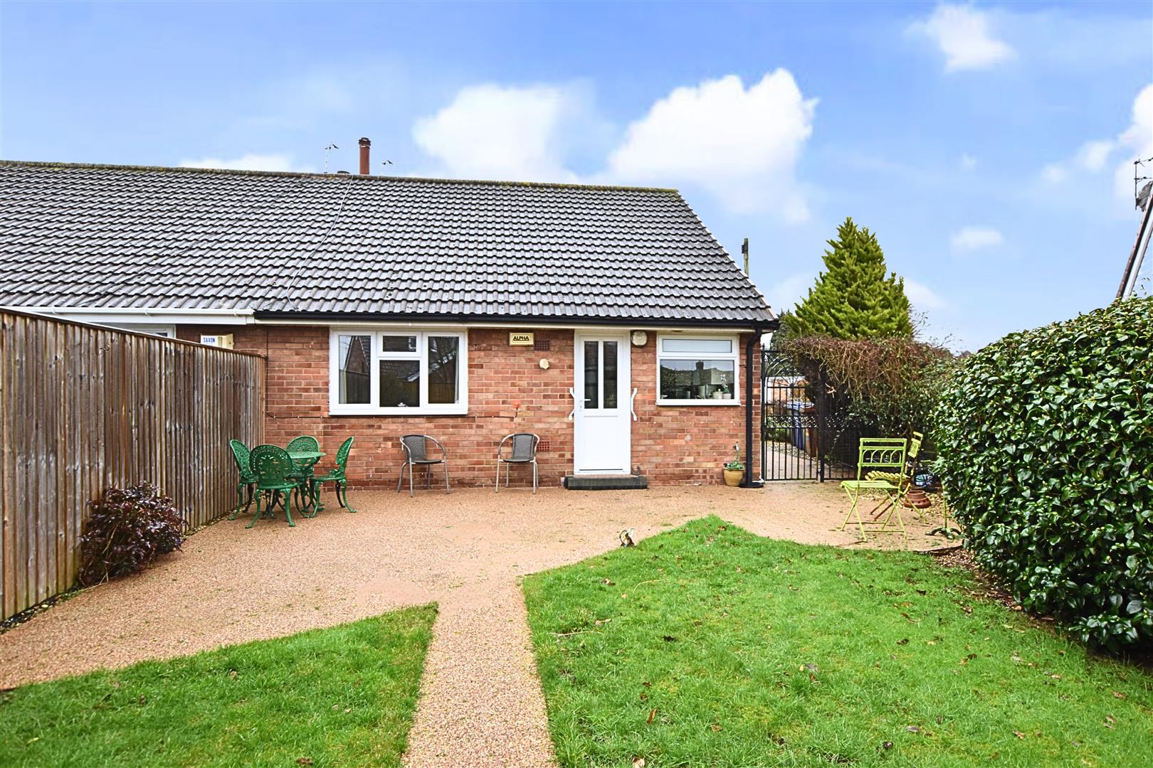 The property sits away from the road with a low walled boundary and open access stone bonded driveway which provides ample off road parking. The front garden is laid to lawn with mature planting to the borders. A high wrought iron gate leads you to the westerly facing rear garden which has fenced boundaries, continued stone bonded pathway extending to a patio area, lawn, mature planting to the borders and a timber shed.