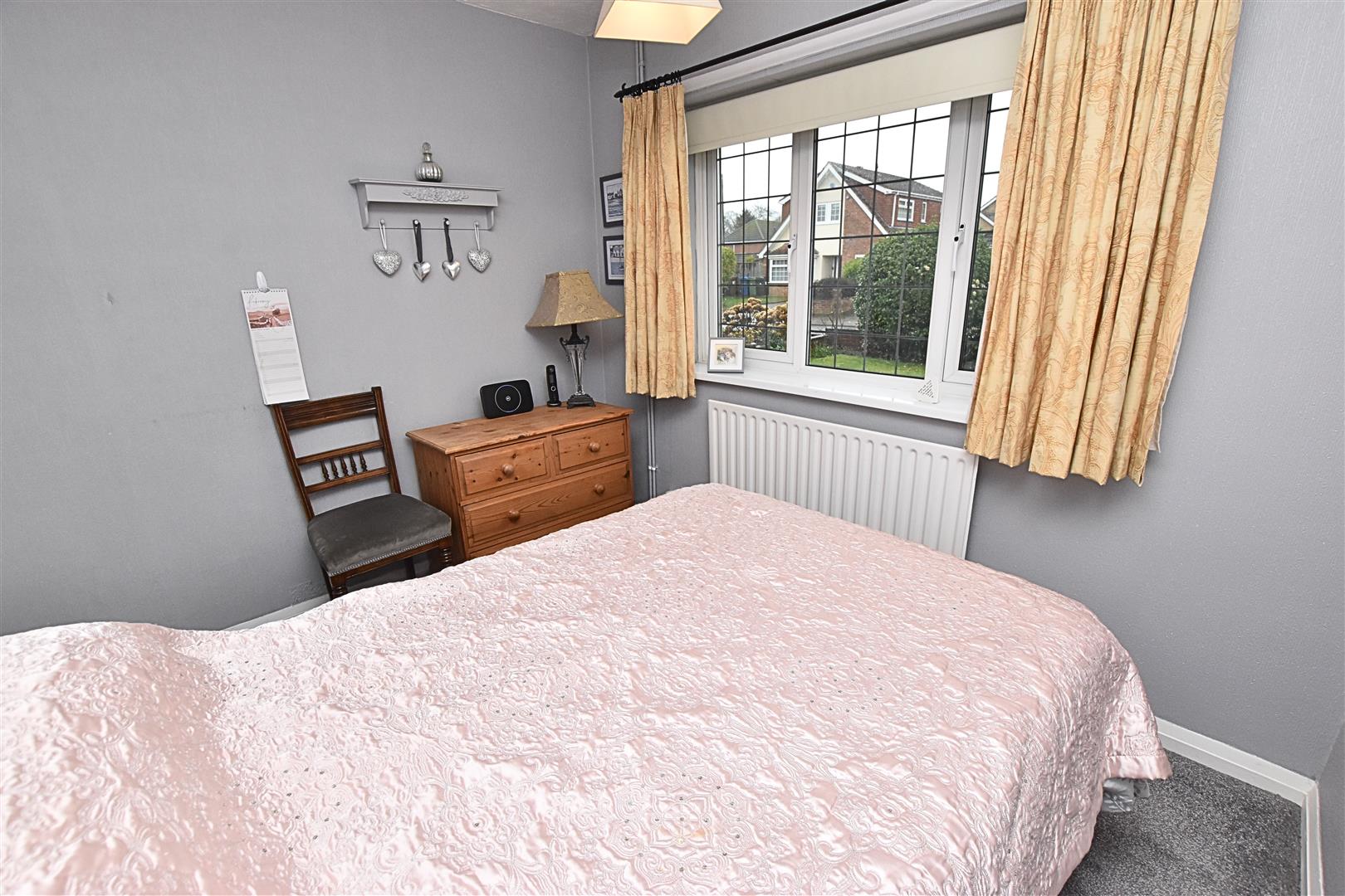 The master bedroom is to the rear of the property with a uPVC double glazed window with carpeted flooring, radiator and a range of cream fronted wardrobes with overhead cupboards with matching dressing table and draws.