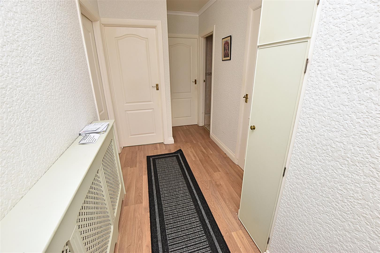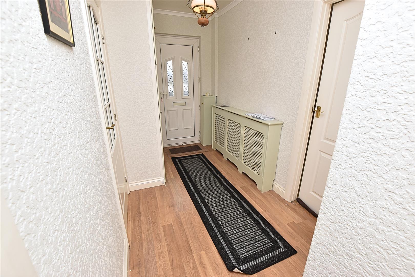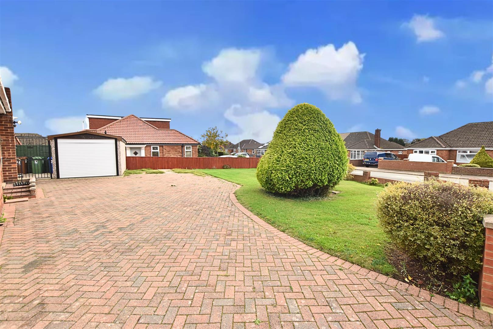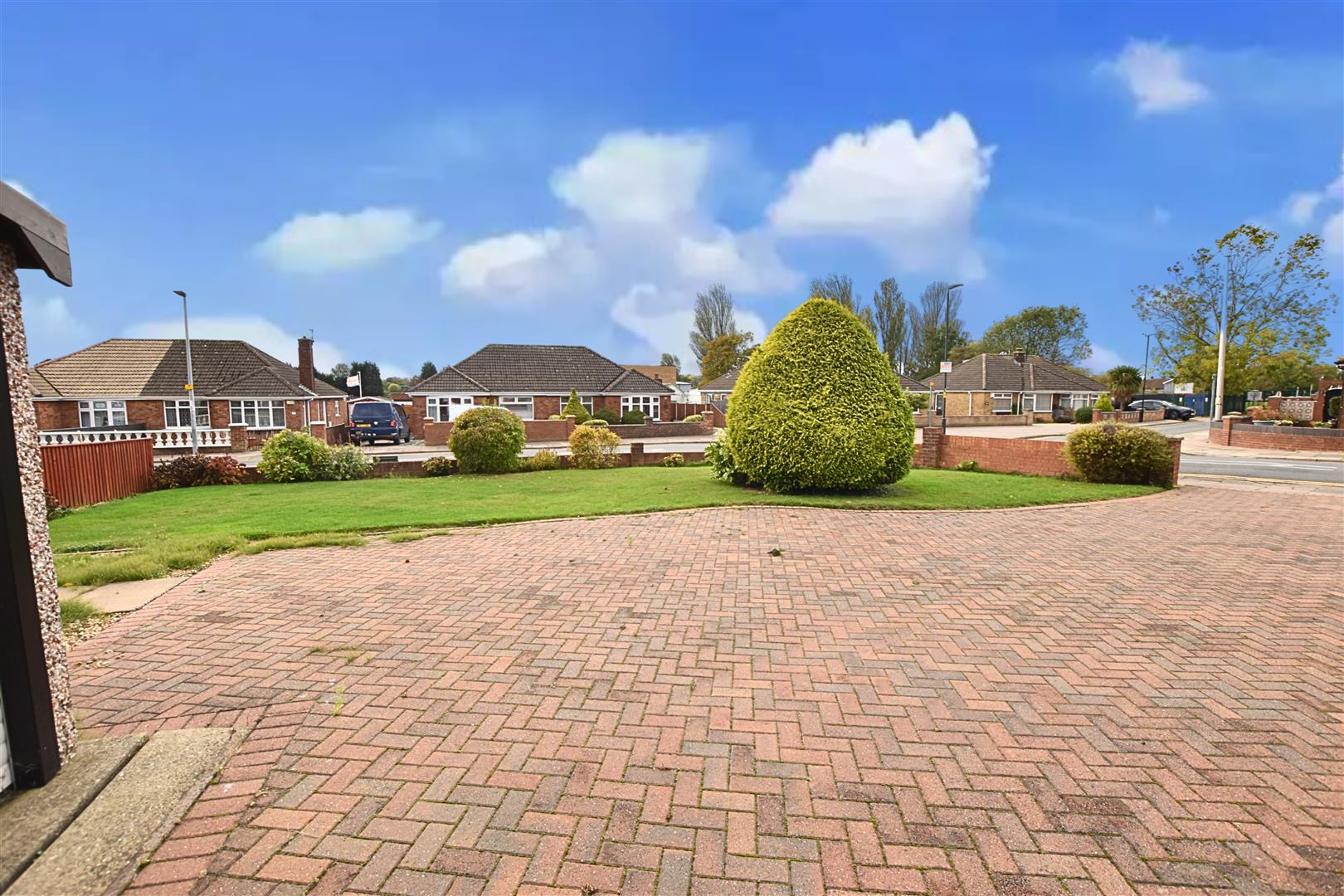 The property enjoys a corner plot with larger than average fore gardens. Having low walled boundaries to the front with an open access red brick paved driveway providing off road parking for several vehicles and leading to the detached garage. The gardens are mainly laid to lawn with mature planting to the borders. Ample space to store a caravan or large motorhome. Wrought iron gate leading to the rear garden which is paved for low maintenance and has fencing to the boundaries.