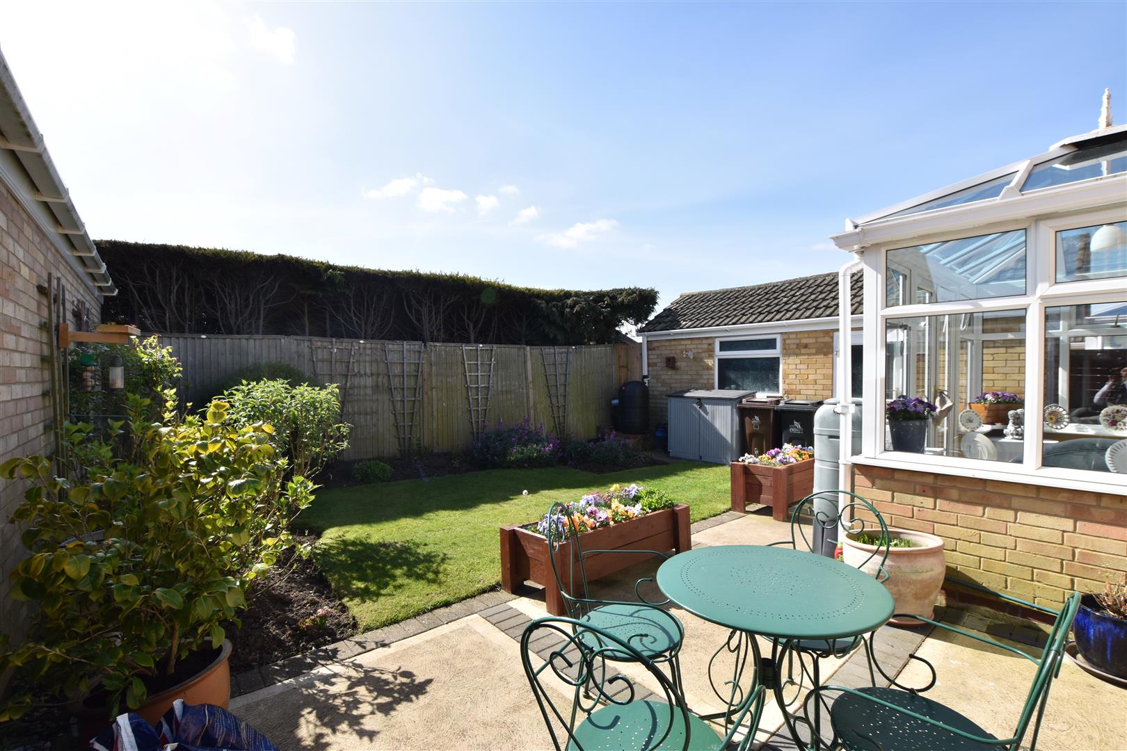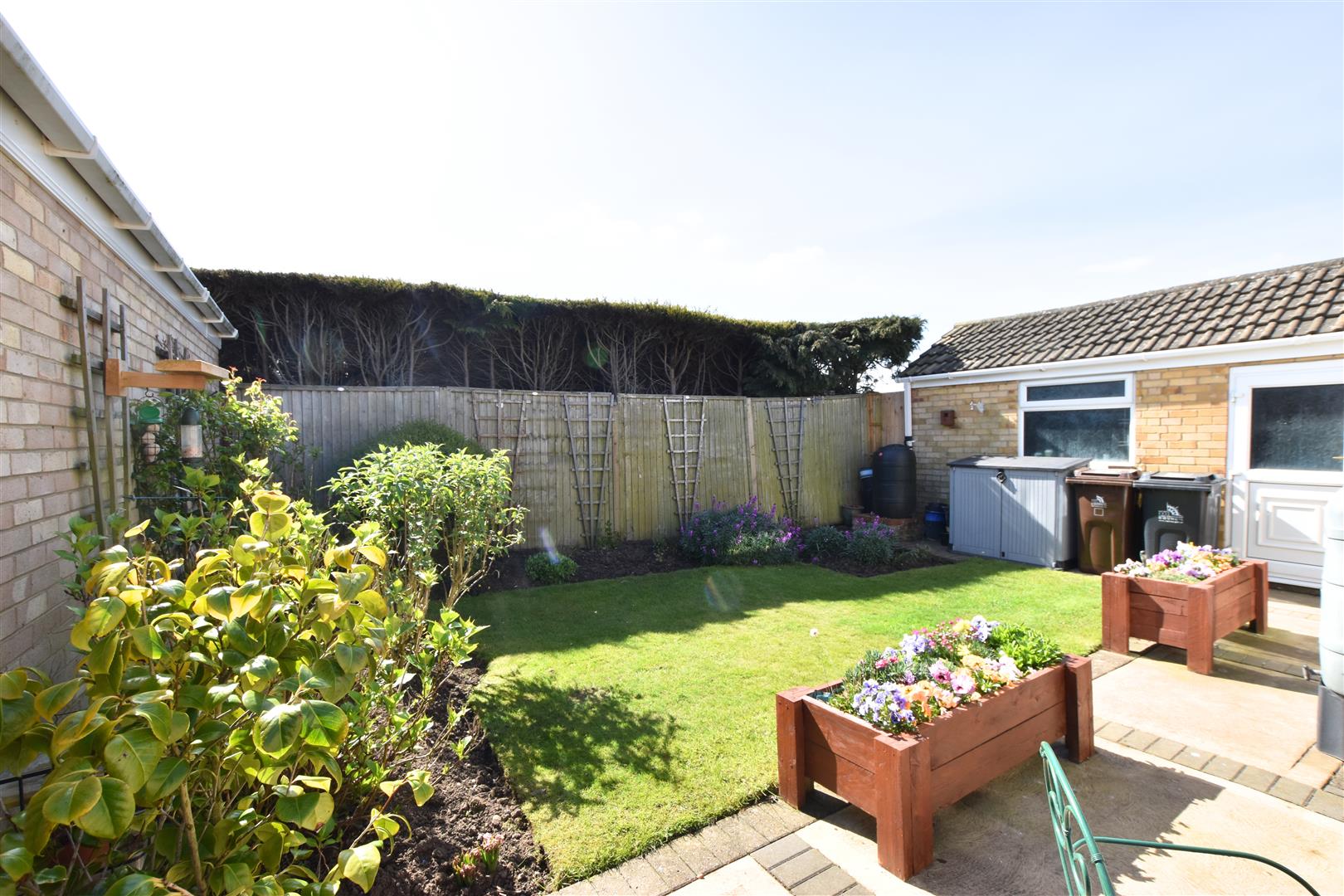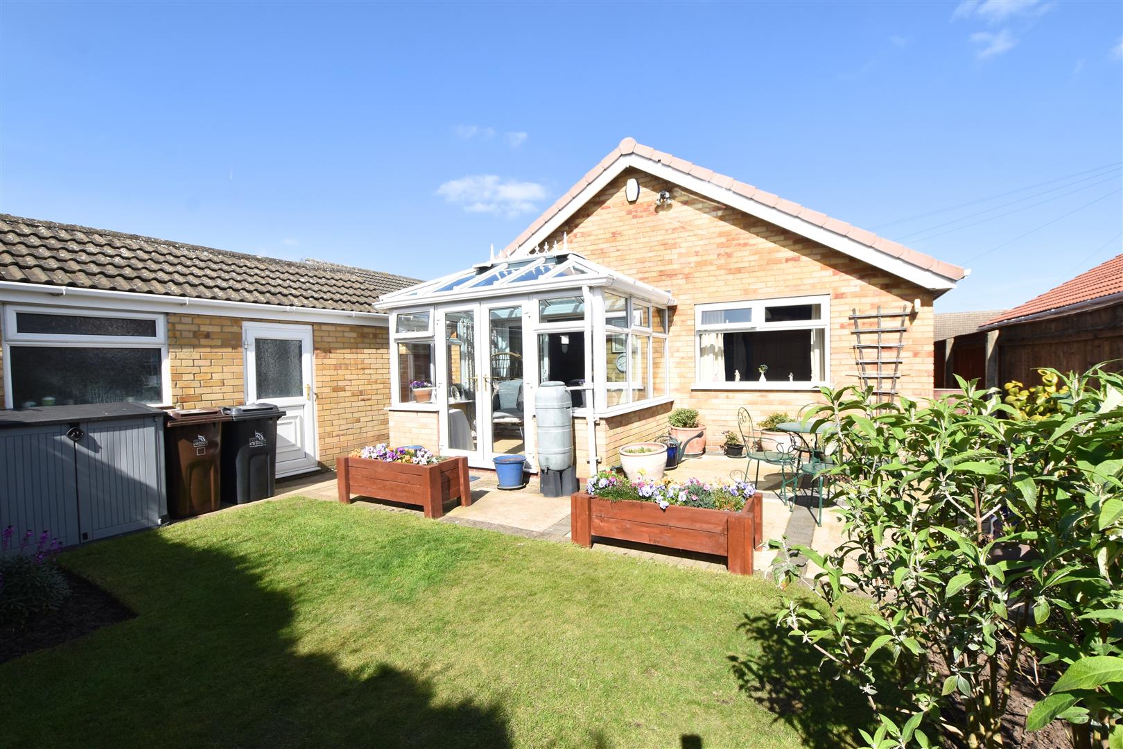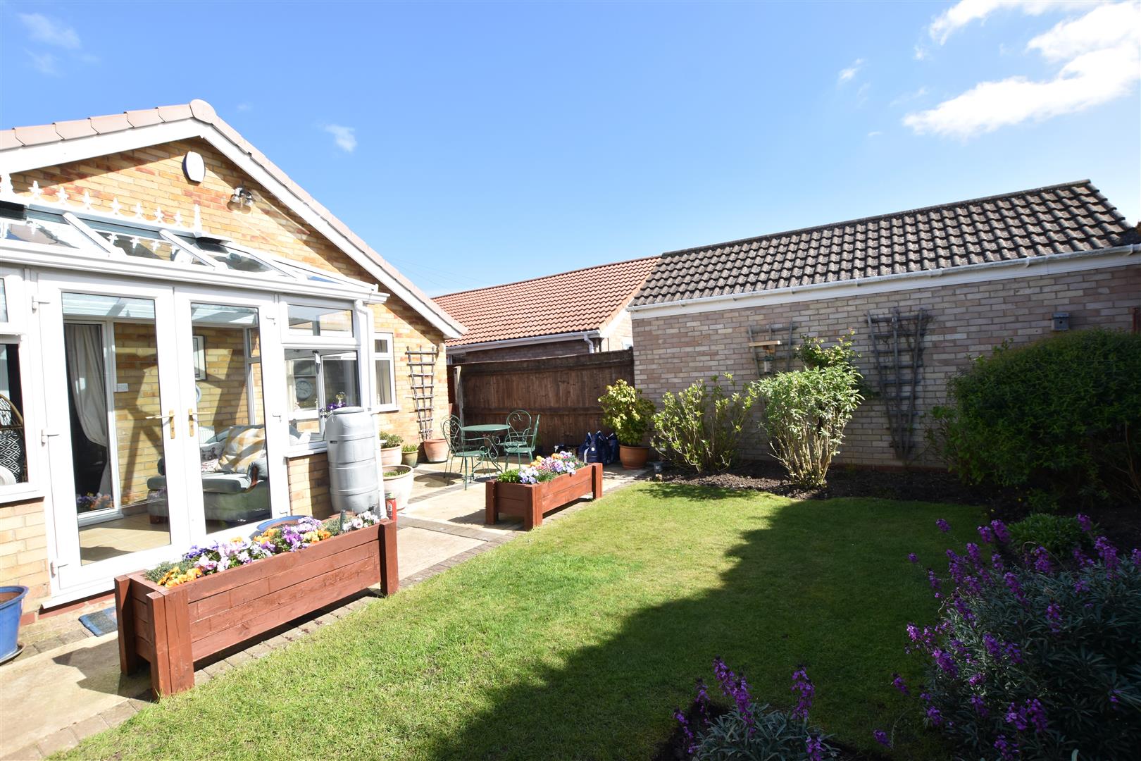 The property stands in well maintained front and rear gardens, the fore garden is set behind a small brick wall having double black wrought iron gates leading onto the excellent driveway way which is concrete edged with red blocks. The remainder of the garden is lawned edged with spring flowers. The rear SOUTH FACING rear garden is again lawned with planted borders together with a paved patio area ideal for Alfresco dining.