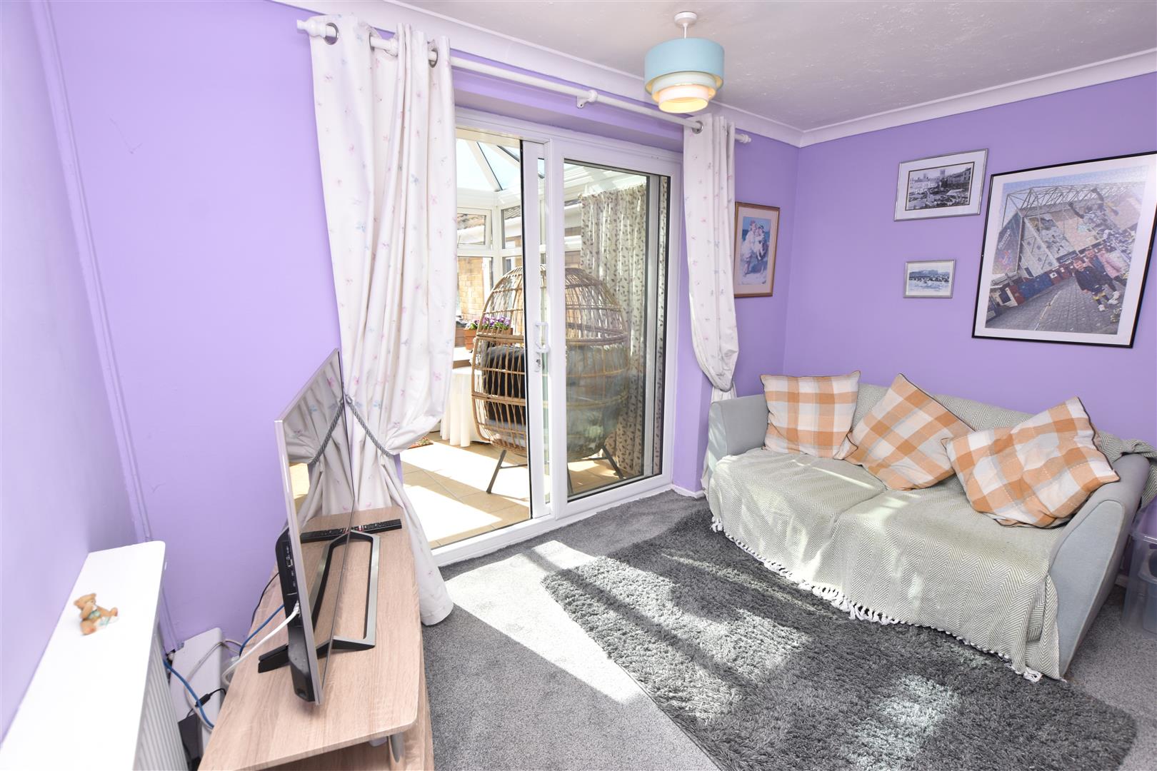 Coving to ceiling, radiator and double glazed french doors which opens into the conservatory.