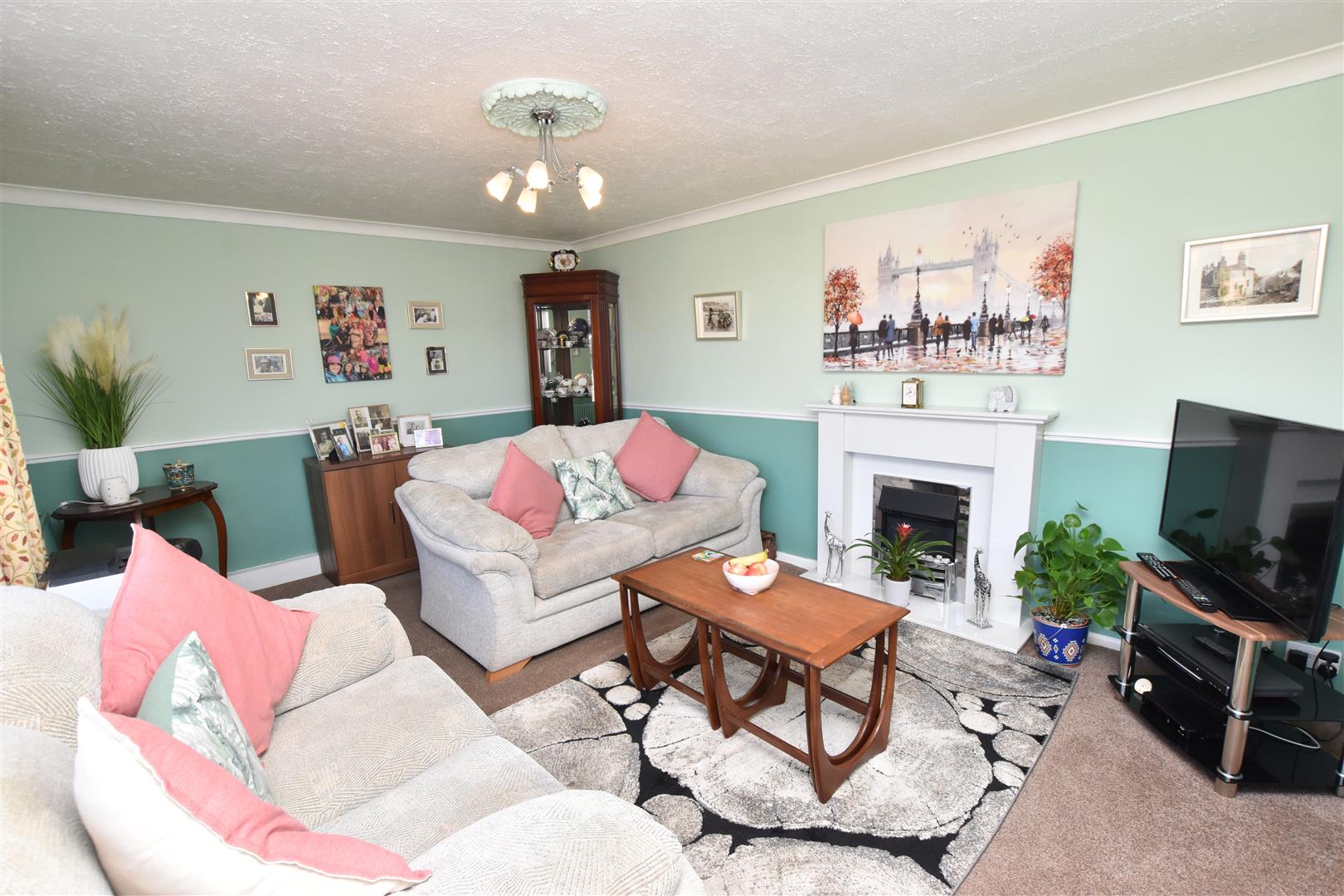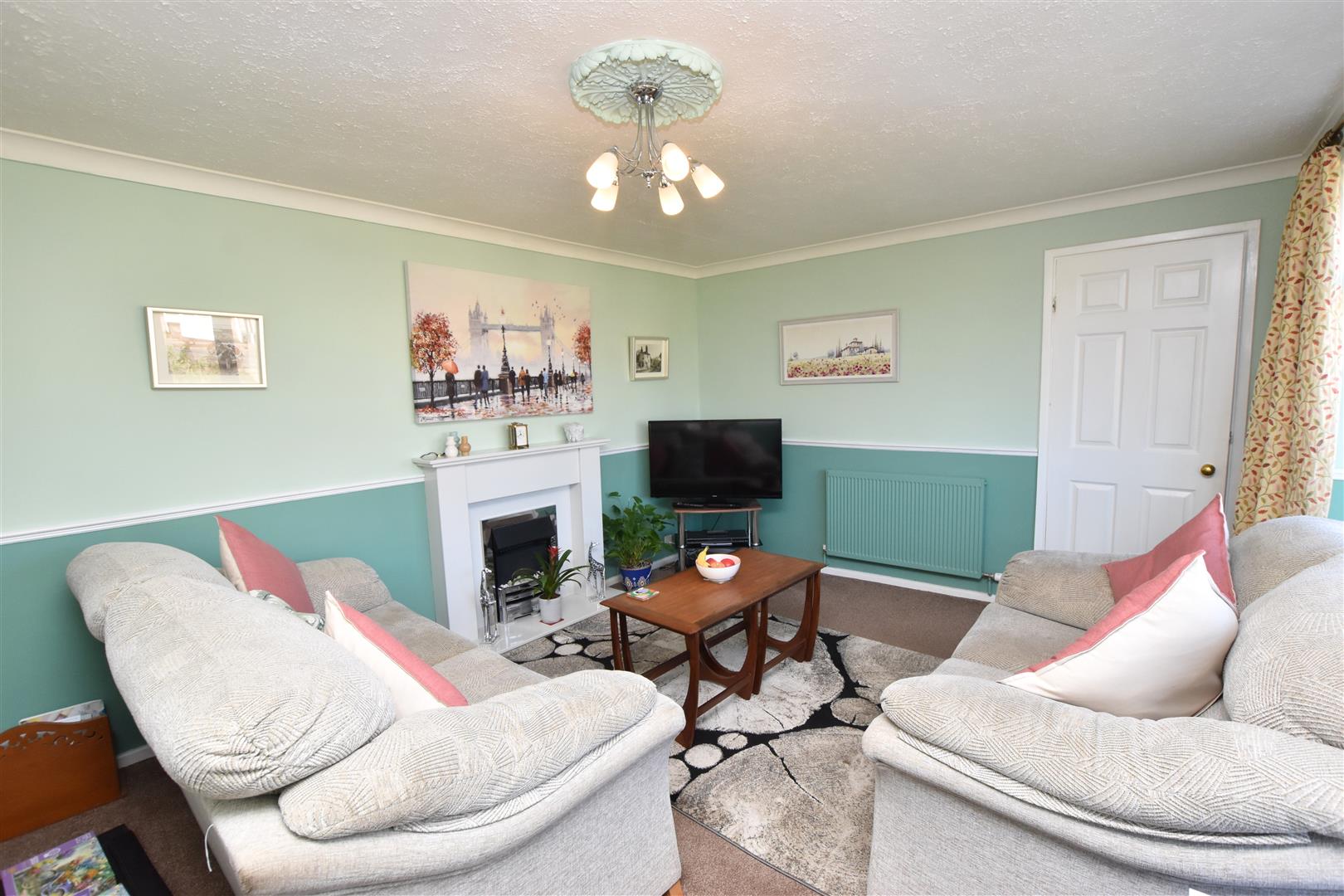 An excellent sized formal lounge which has a double glazed bay window to the front elevation, fitted dado rail and radiator. The focal point of this room is the modern white fire surround which is inset with an electric fire.