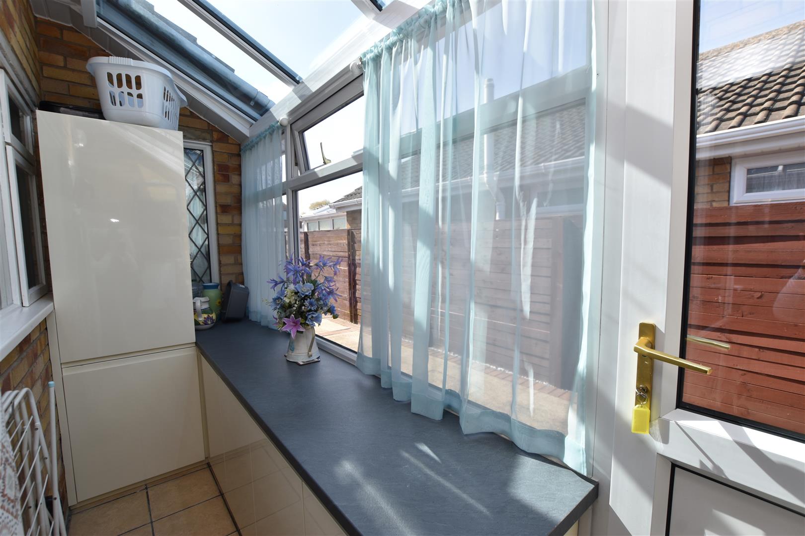 This useful utility room is access is from the kitchen and is fitted with matching cream units which provides excellent additional storage. Double glazed windows and doors.