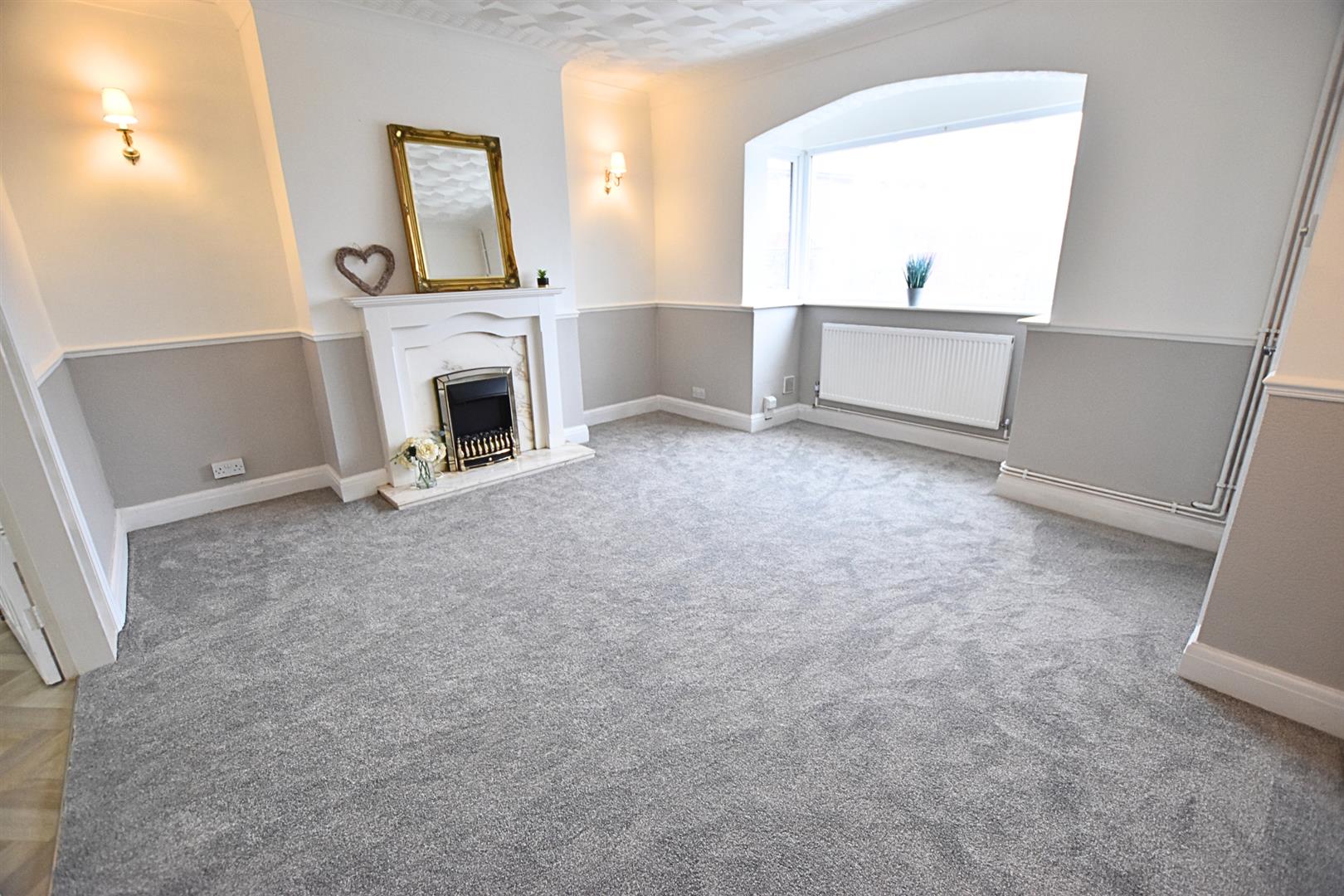 The light and airy room has a uPVC double glazed bay window to the front aspect, coving to the ceiling, carpeted flooring and radiator. Feature fireplace with white wood surround, marble hearth and back and electric fire fitted. Open double doors to the dining room.