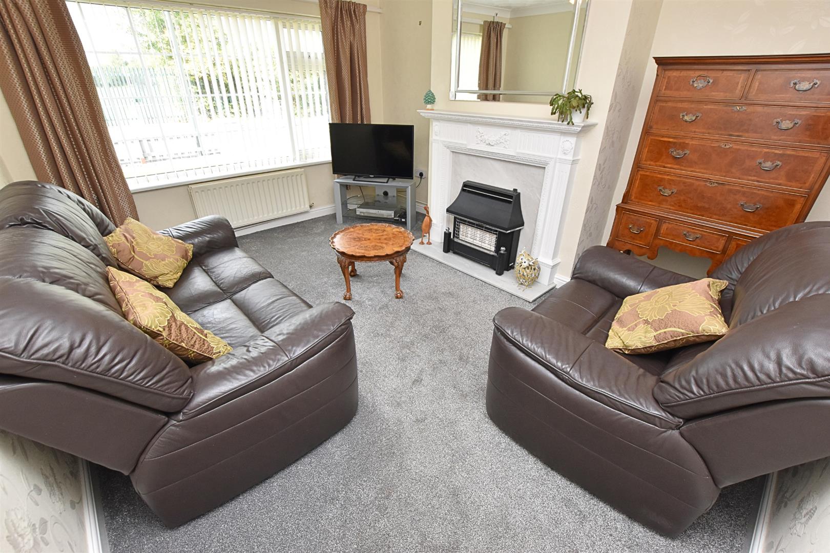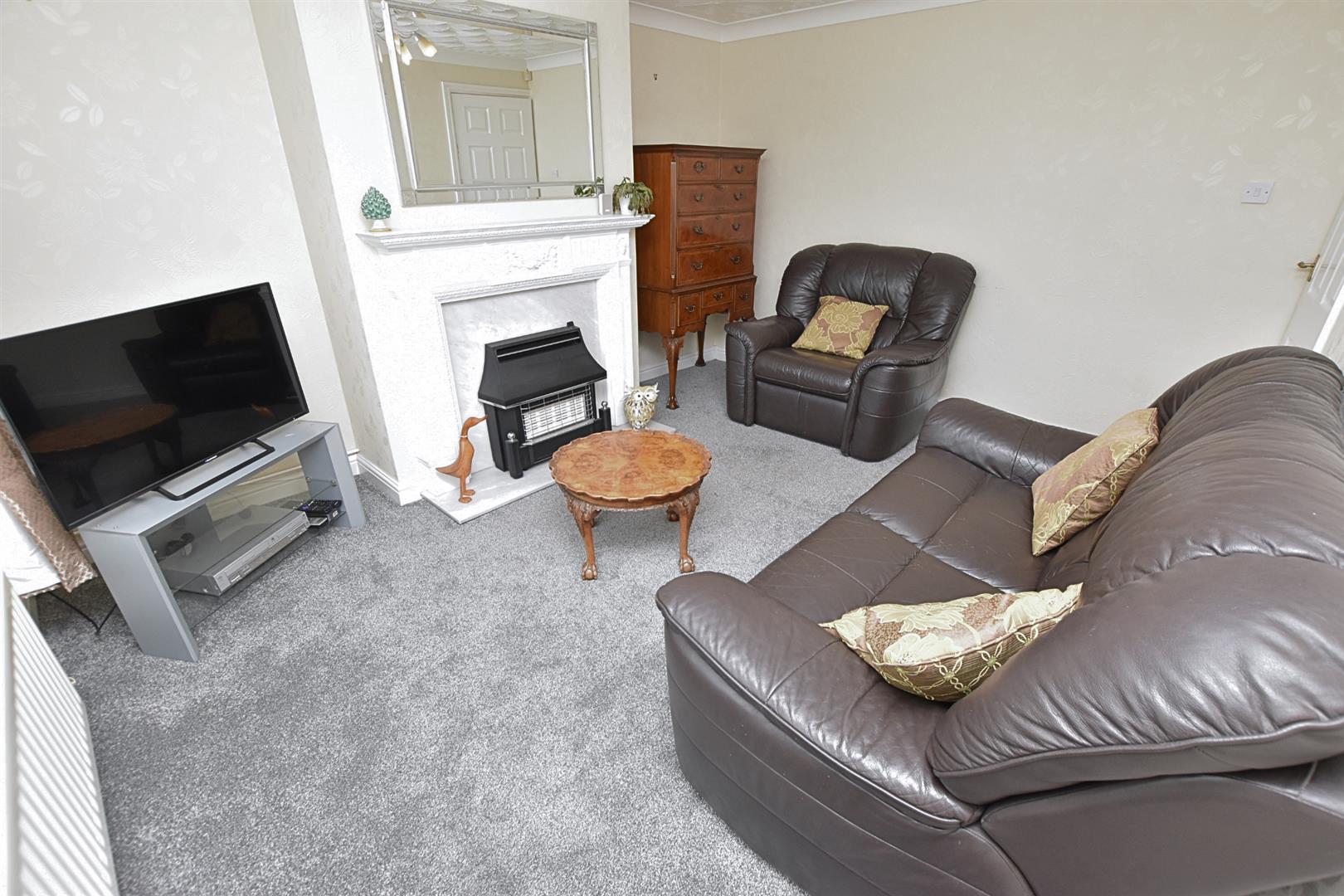 The lounge has a uPVC double glazed window with blinds fitted to the front aspect, coving to the ceiling, carpeted flooring, radiator and ornate white wood fire surround with marble hearth and back and gas fire.