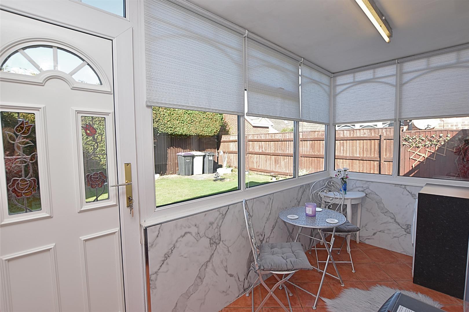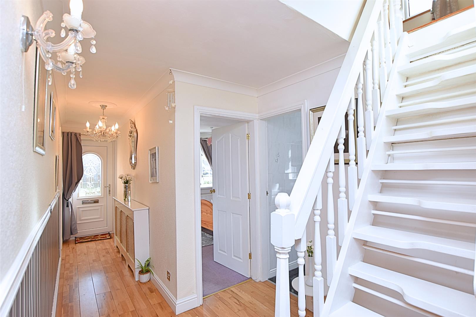 Standing on a prominent corner plot the front garden is accessed via a block paved driveway which a matching pathway which leads to the front door, this garden is lawned with established borders of bushes and shrubbery. The side garden is paved with grey contemporary styled paving slabs edged with raised borders and is ideal for outside entertaining with the rear garden being laid to lawn.