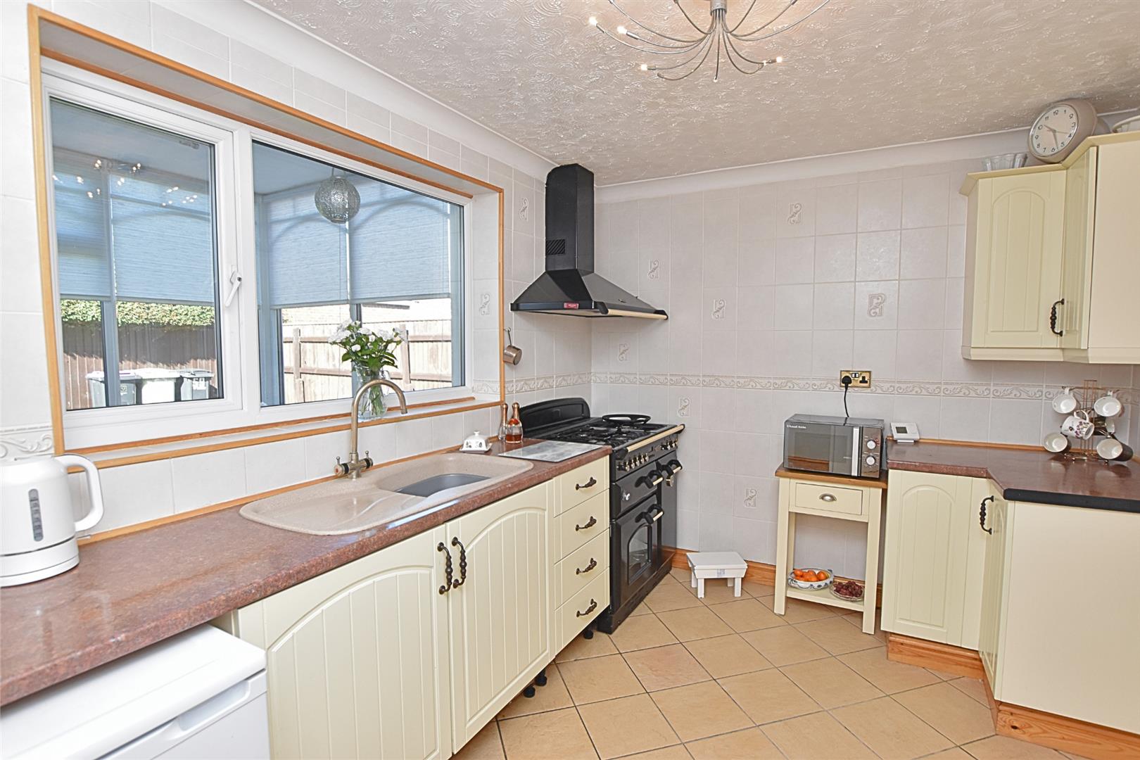 With a range of cream base and wall cupboards having contrasting work surfaces inset with a resin sink unit. Included in the sale is the Rangemaster having a matching extractor fan above. Useful storage cupboard. Tiled walls, double glazed window and radiator.