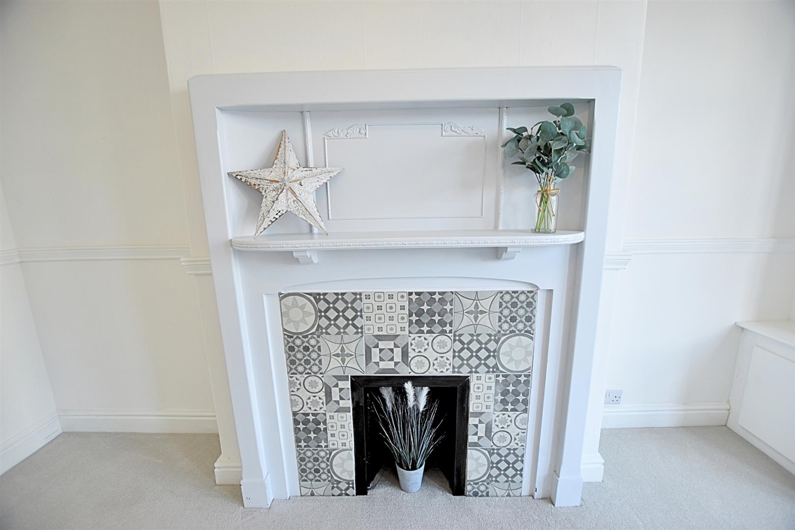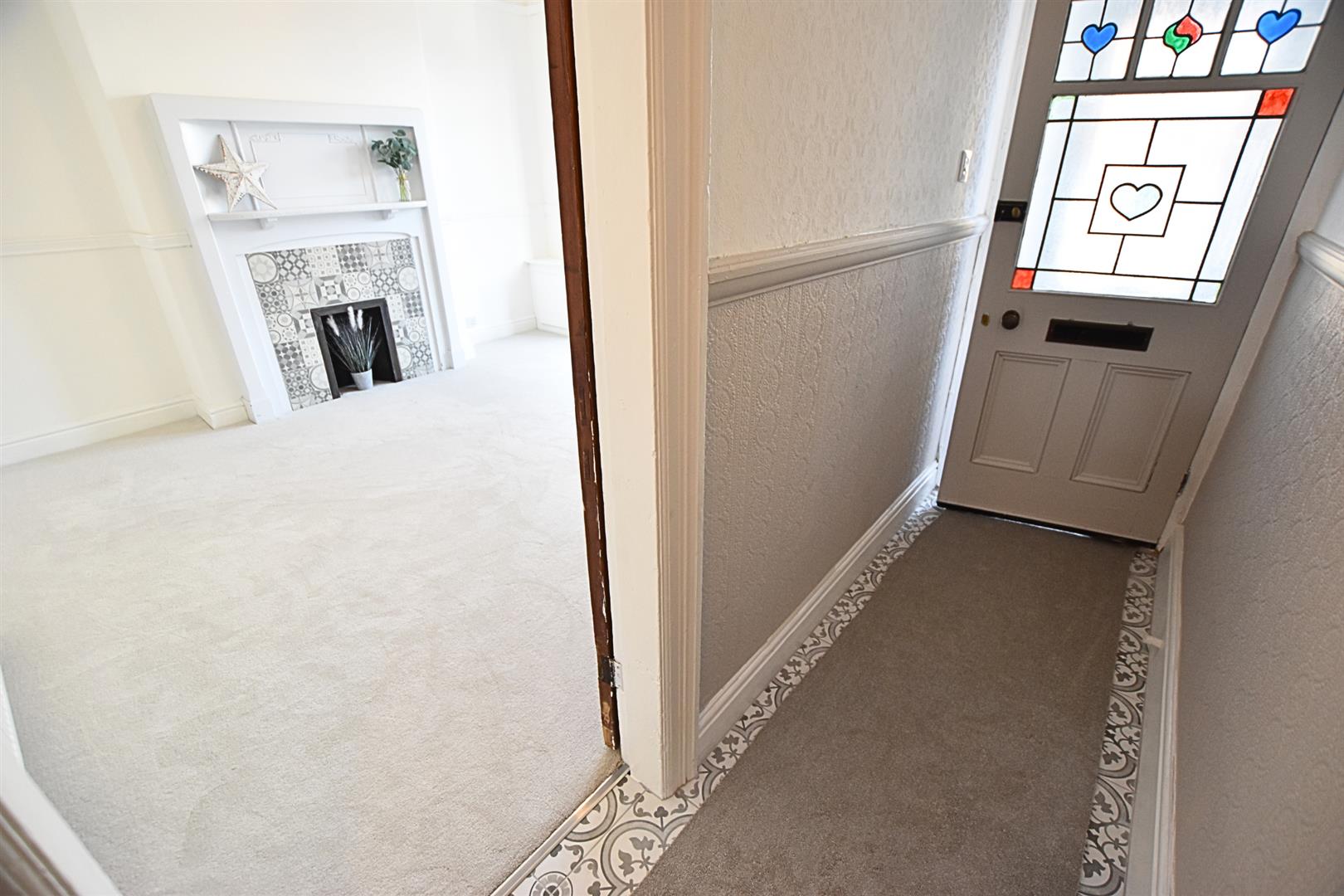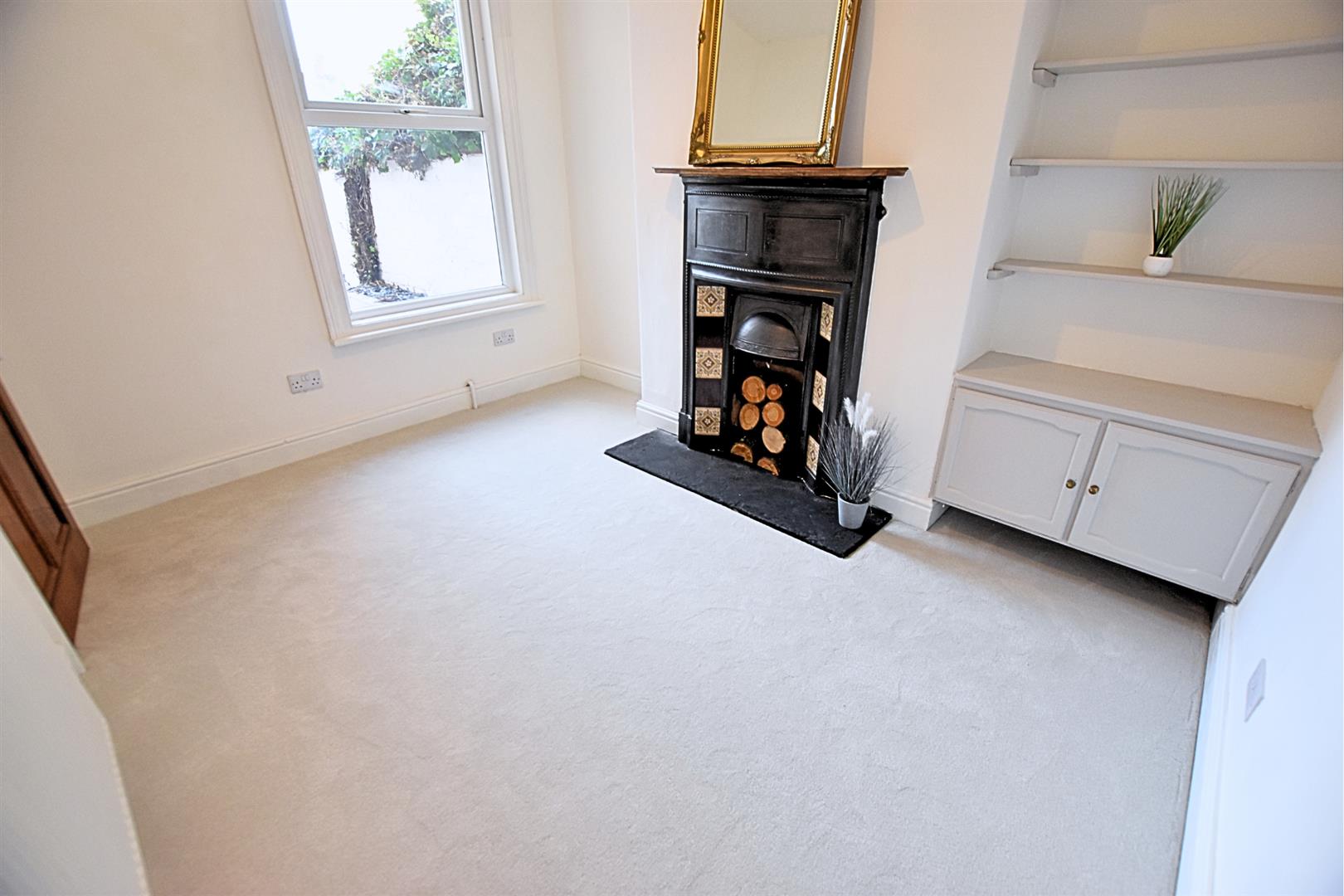 The second sitting room has a uPVC double glazed window to the rear aspect with feature original cast iron fire surround with tiled sides. Handy painted shelving and storage cupboard, newly fitted carpeted flooring and radiator.