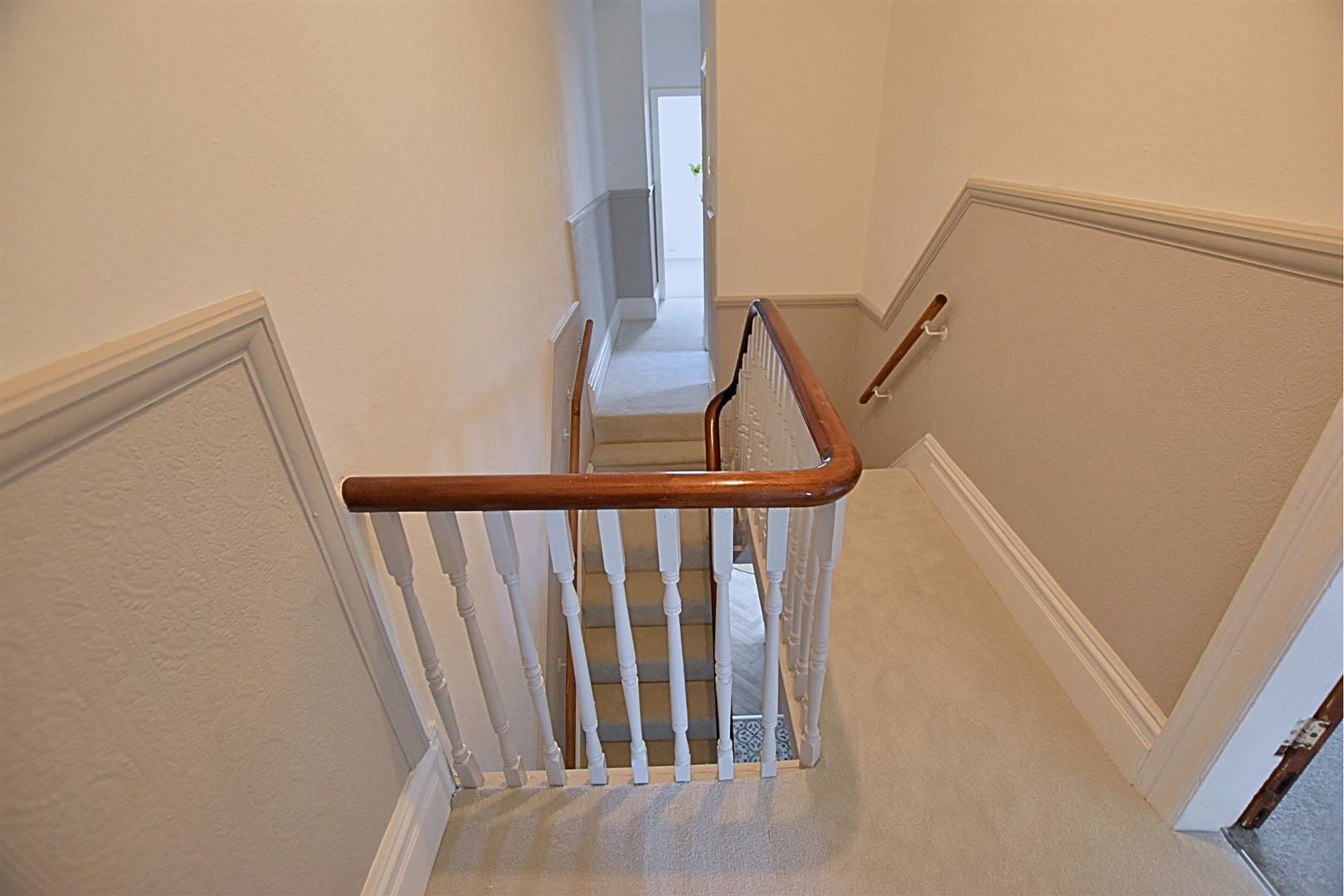 The split level landing has the continued spindle balustrade with oak hand rail, original coving to the ceiling, dado rail, newly fitted carpeted flooring and light window to the loft.