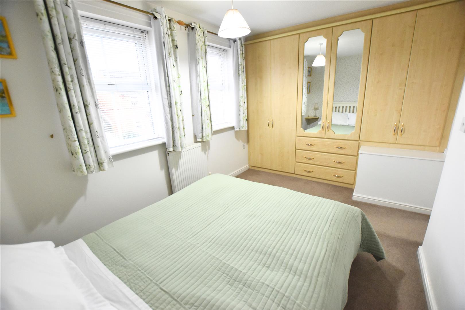 The largest of the three bedrooms is to the front aspect with two uPVC double glazed windows having modern white blinds fitted, carpeted flooring, radiator and wall to wall built in wardrobes and draws.