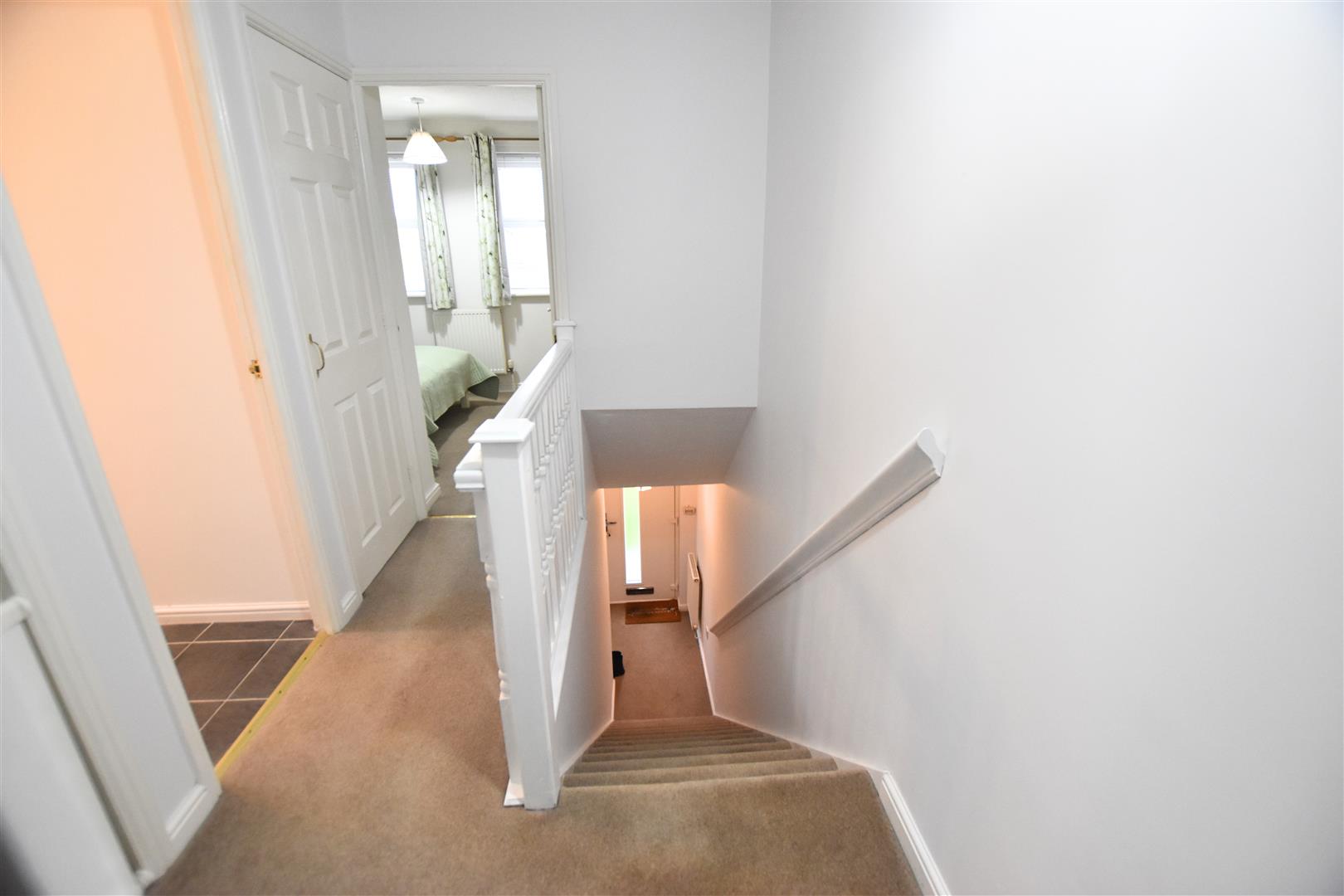 Having continued carpeted flooring with white wooden spindle balustrade, airing cupboard and loft access to the ceiling.