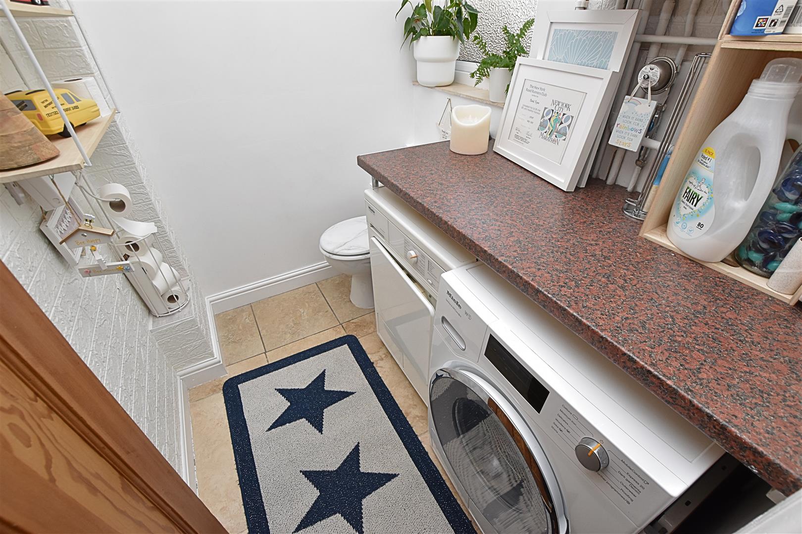 This useful utility room has a contrasting worksurface with ample space below for an automatic washing machine and tumble dryer. Benefitting from a white low flush wc and housing the wall mounted boiler. Finished with tiled flooring and a uPVC double glazed window to the rear aspect.