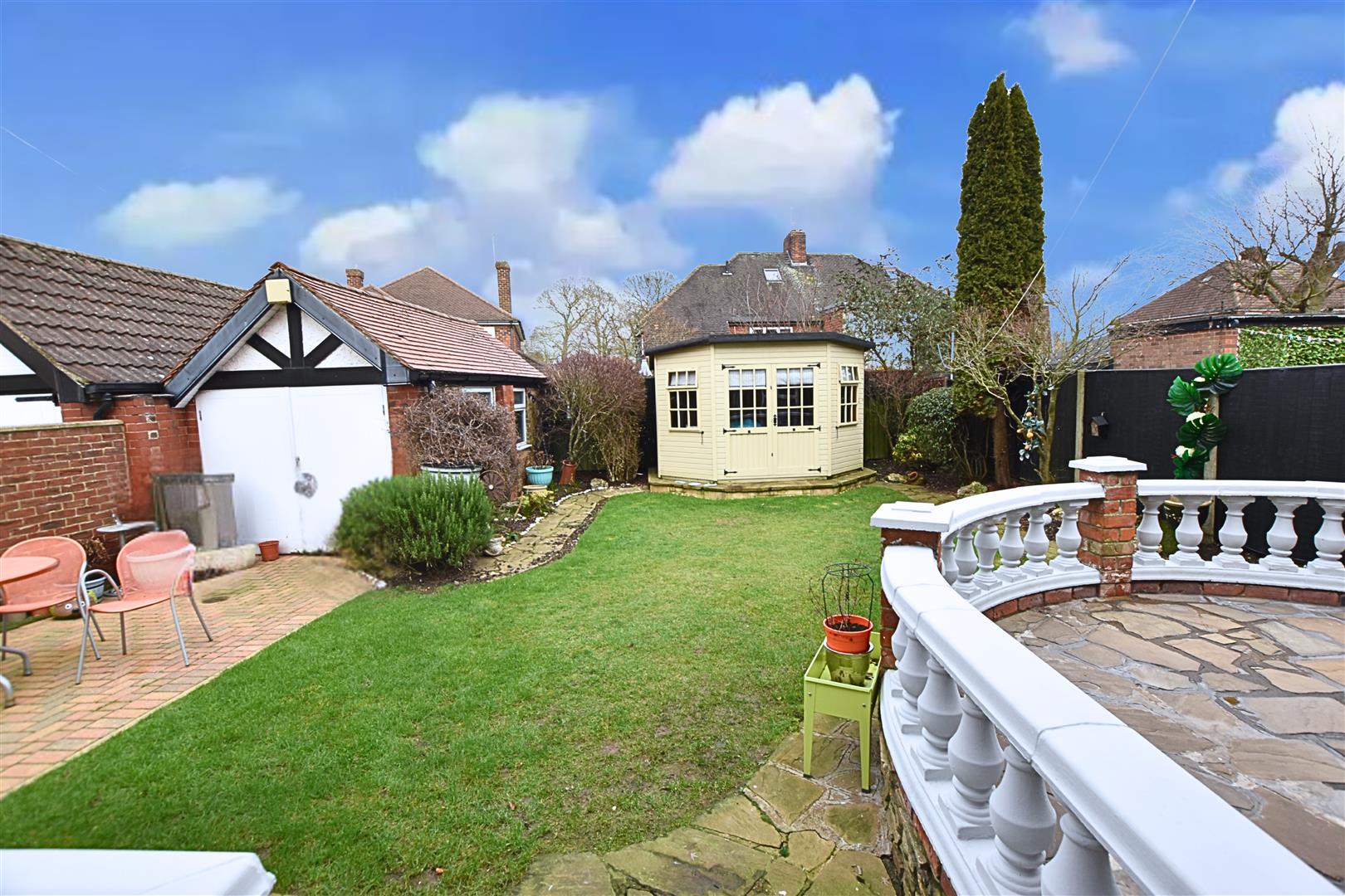 This impressive property stands away from the road with an open access red brick paved driveway that provides ample off road parking, black metal fencing to the front boundary and a walled boundary to the side. The front garden is laid to lawn with mature trees and shrubs planted. Double wooden gates lead you to the rear garden, further driveway and detached garage. The rear garden has a mixture of walled and fenced boundaries and is laid to lawn with mature planting to the borders. Raised paved patio leading from the property with part being cover with decorative pillars overlooking the garden. An added extra addition is the timber summer house which is fitted with electric and lighting.