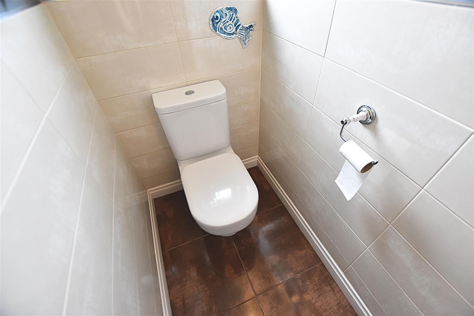 The separate toilet benefits from a white low flush wc and has wall tiling to dado height with tiled floor and a uPVC double glazed window to the rear.