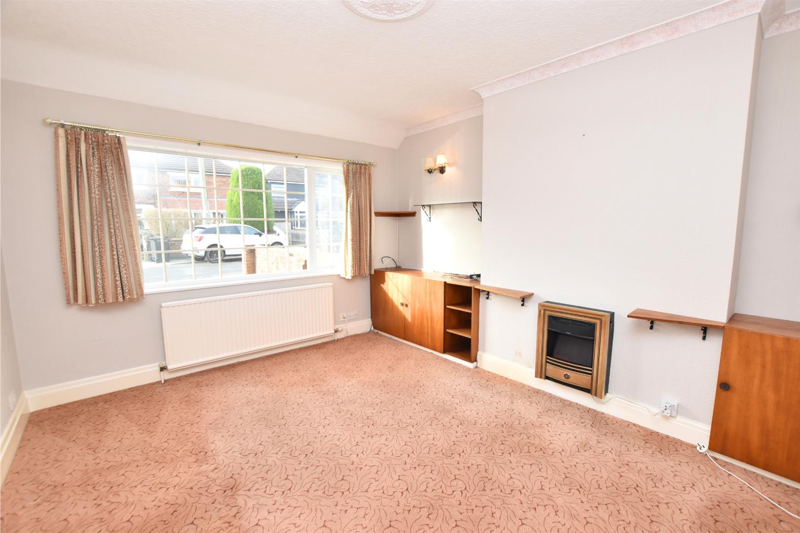 Having a double glazed window to the front elevation, coving to ceiling, radiator and three wall light points. The focal point of this room is the wall mounted Baxi Bermuda gas boiler/gas fire (last serviced in October 2025) which has cupboards either side.