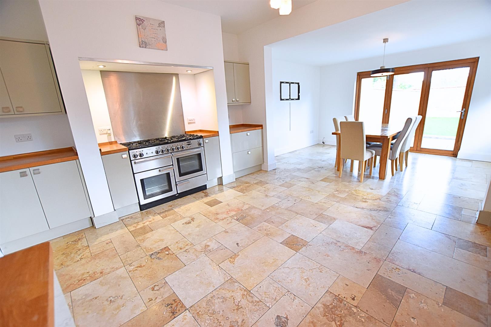 The true hub of the home combining modern day living with a view over the private garden. The kitchen benefits from a large range of wall and base units in a Taupe coloured high gloss with solid wood work surfaces and matching upstands, incorporating a composite sink and drainer, rangemaster oven with stainless steel splashback and feature chimney down lighting, integrated dishwasher and ample space fir further appliances. Wall mounted boiler in matching larder unit. Finished with under floor heating, tiled flooring, solid wood window sills, two uPVC double glazed windows to the side aspect and solid wood bi-fold doors leading to the paved patio area.