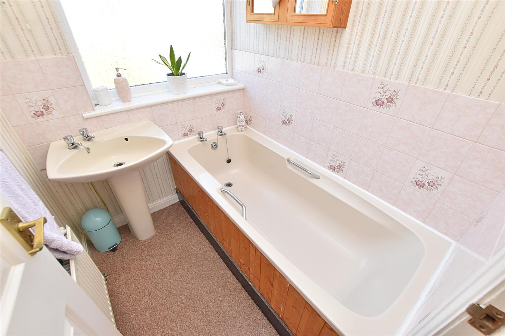 Benefitting from a two piece suite comprising; Bath and pedestal hand wash basin with part tiling to the walls, carpeted flooring, radiator and uPVC double glazing window to the rear.