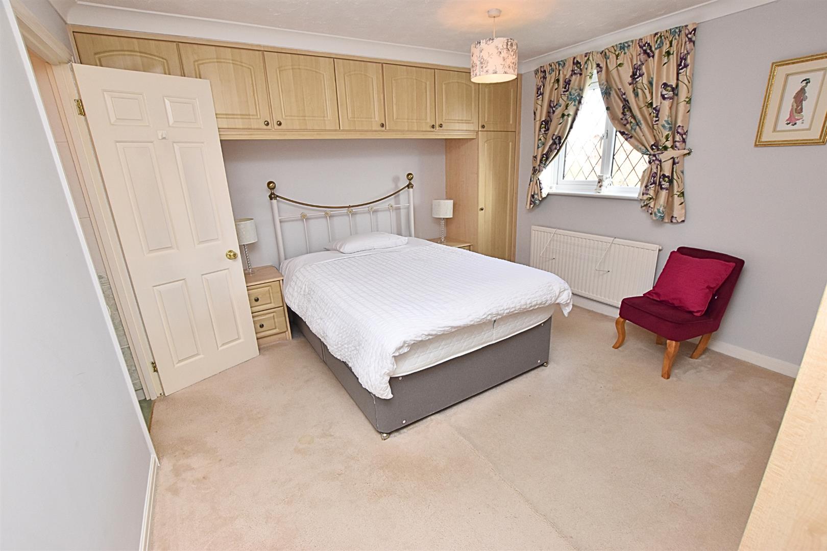 The fourth bedroom is a good size with built in wardrobes with matching over head cupboards, coving to the ceiling, carpeted flooring, radiator and uPVC double glazing.