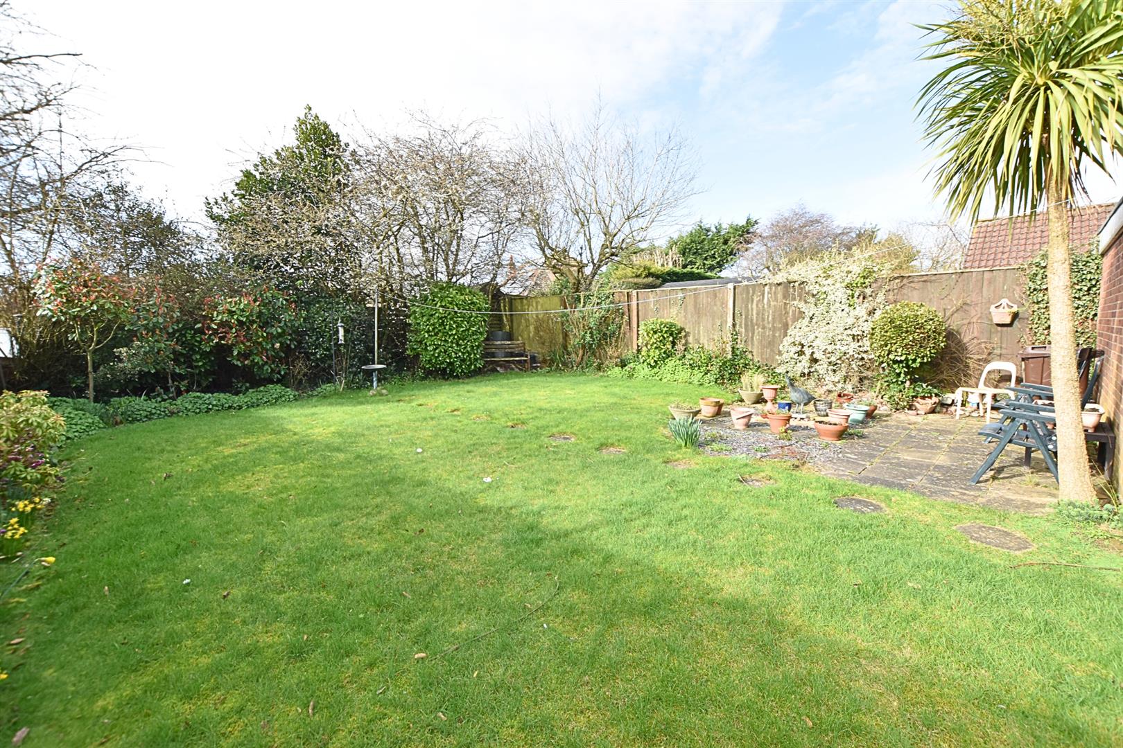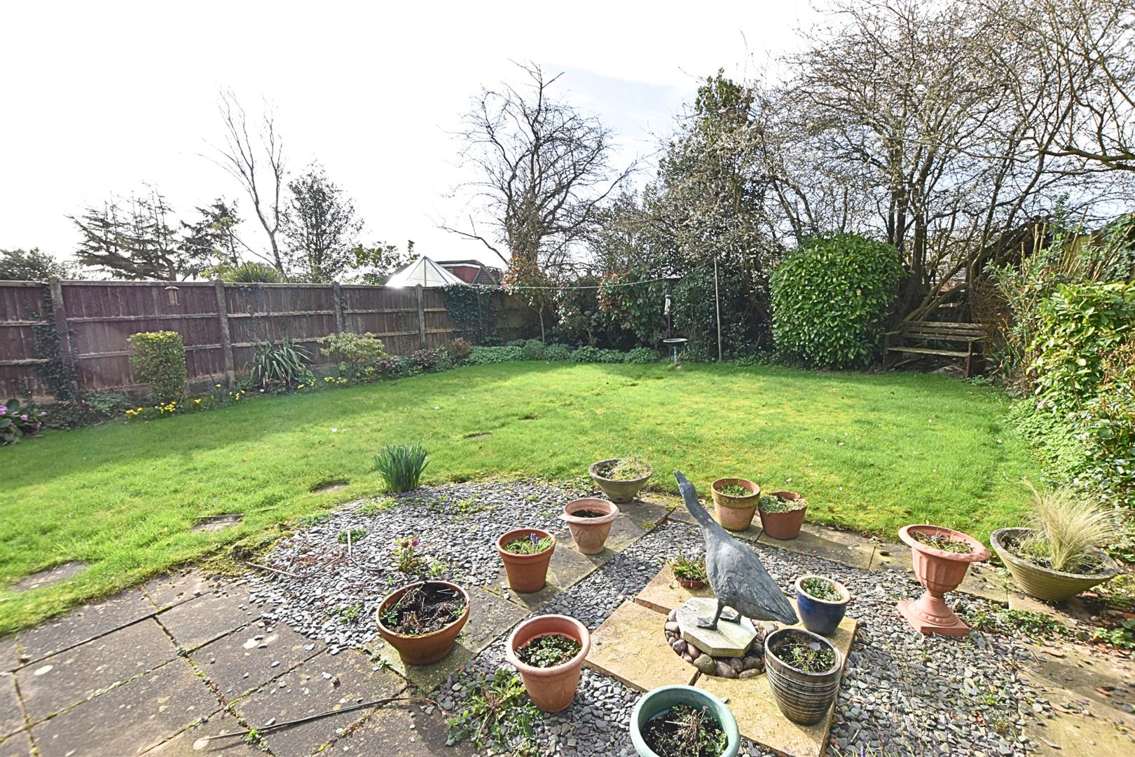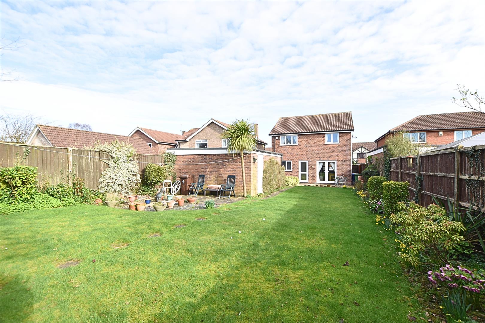The property enjoys a large plot with an open plan garden to the front which is mainly laid to lawn with a paved driveway providing ample off road parking and leading to the detached double garage. The southerly facing rear garden is a great size with fenced boundaries and mature planting to the borders and benefits from dual aspect paved patios ideal for lazy summer afternoons and outside entertaining.