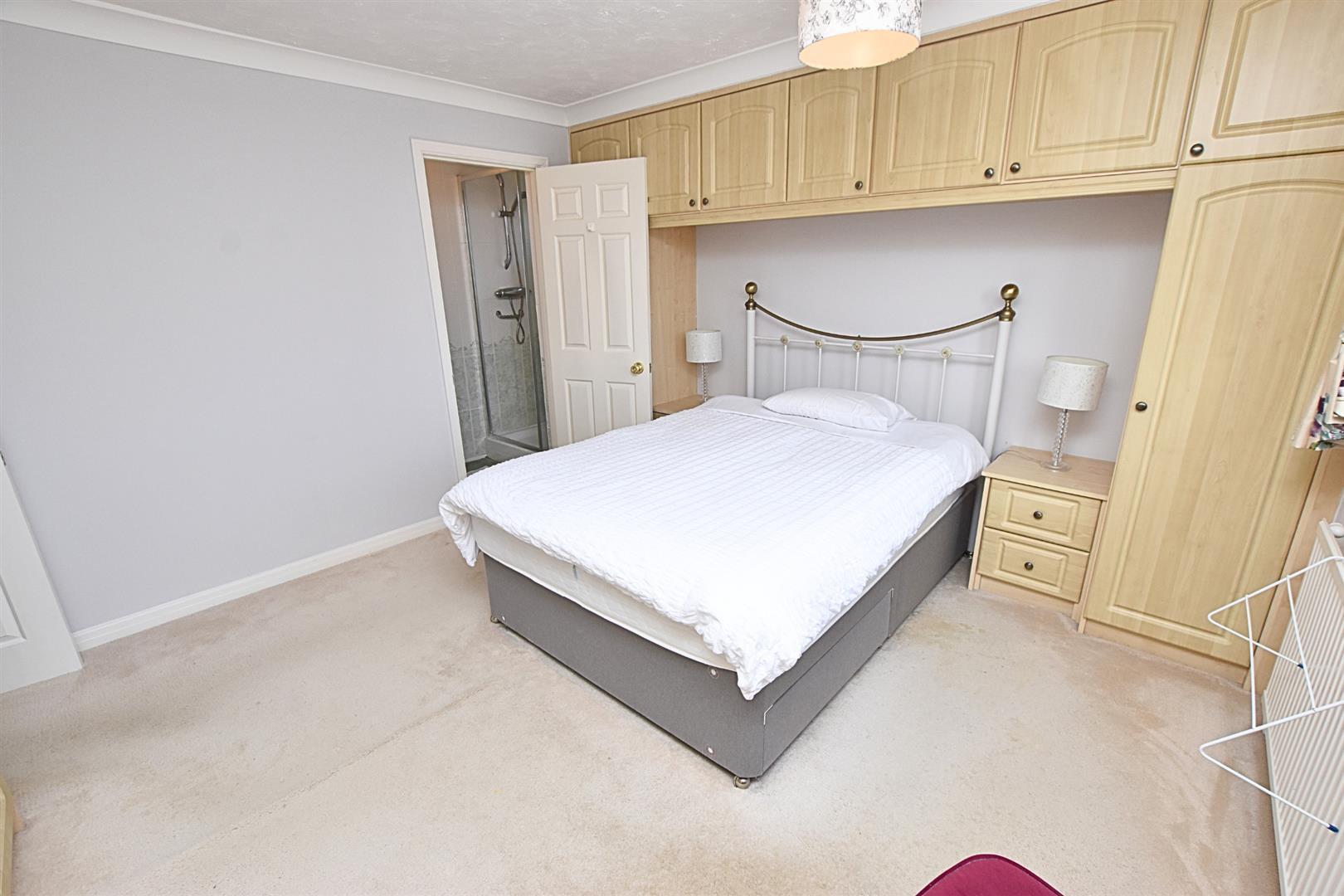 The master bedroom has a uPVC double glazed window to the front aspect, coving to the ceiling, carpeted flooring, radiator and a range of built in wall to wall wardrobes to dual aspect of the room with matching overhead cupboards and bedside drawers.