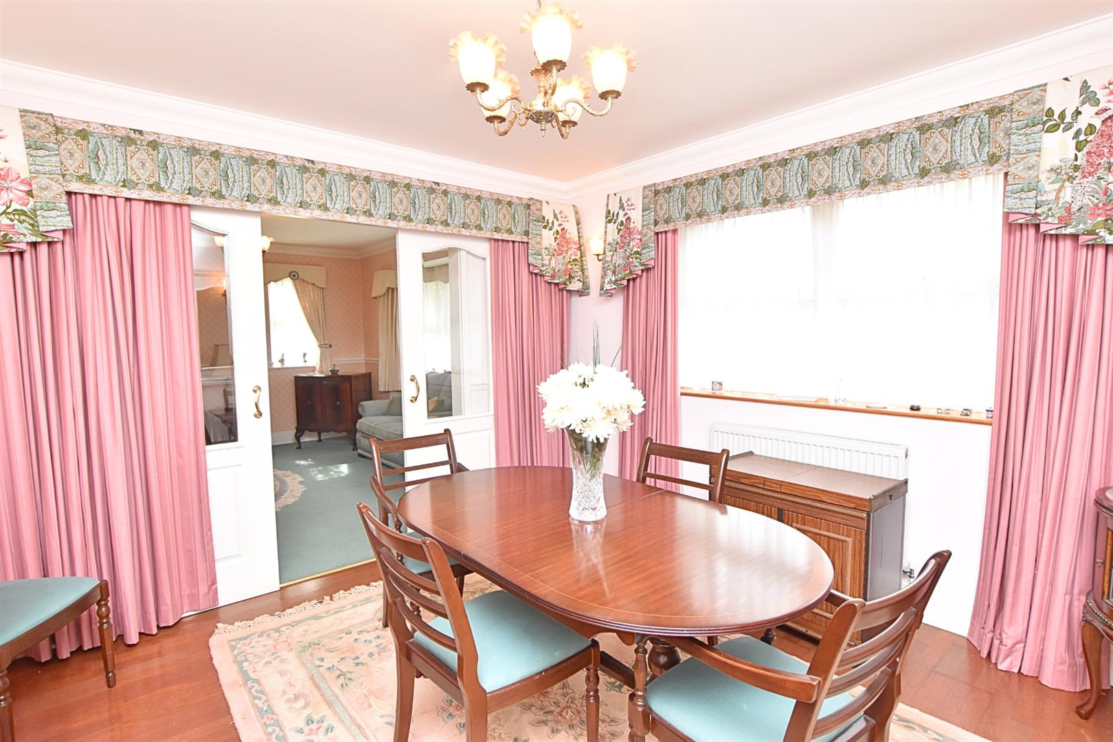With access from both the entrance hall and via double doors from the formal lounge, this dining room with a couple of adjustments could be a fourth bedroom and has a double glazed window to the front elevation, a striking dark wooden floor, a fitted dado rail and radiator.
