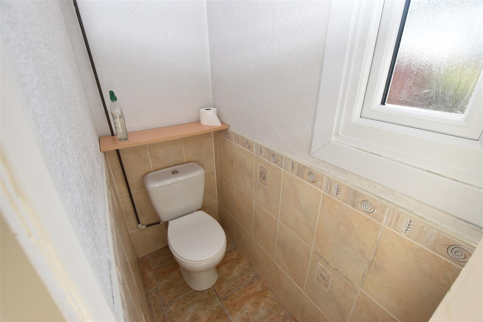 Benefitting from a white low flush wc with tiling to dado height, tiled flooring and uPVC double glazed window to the rear aspect.